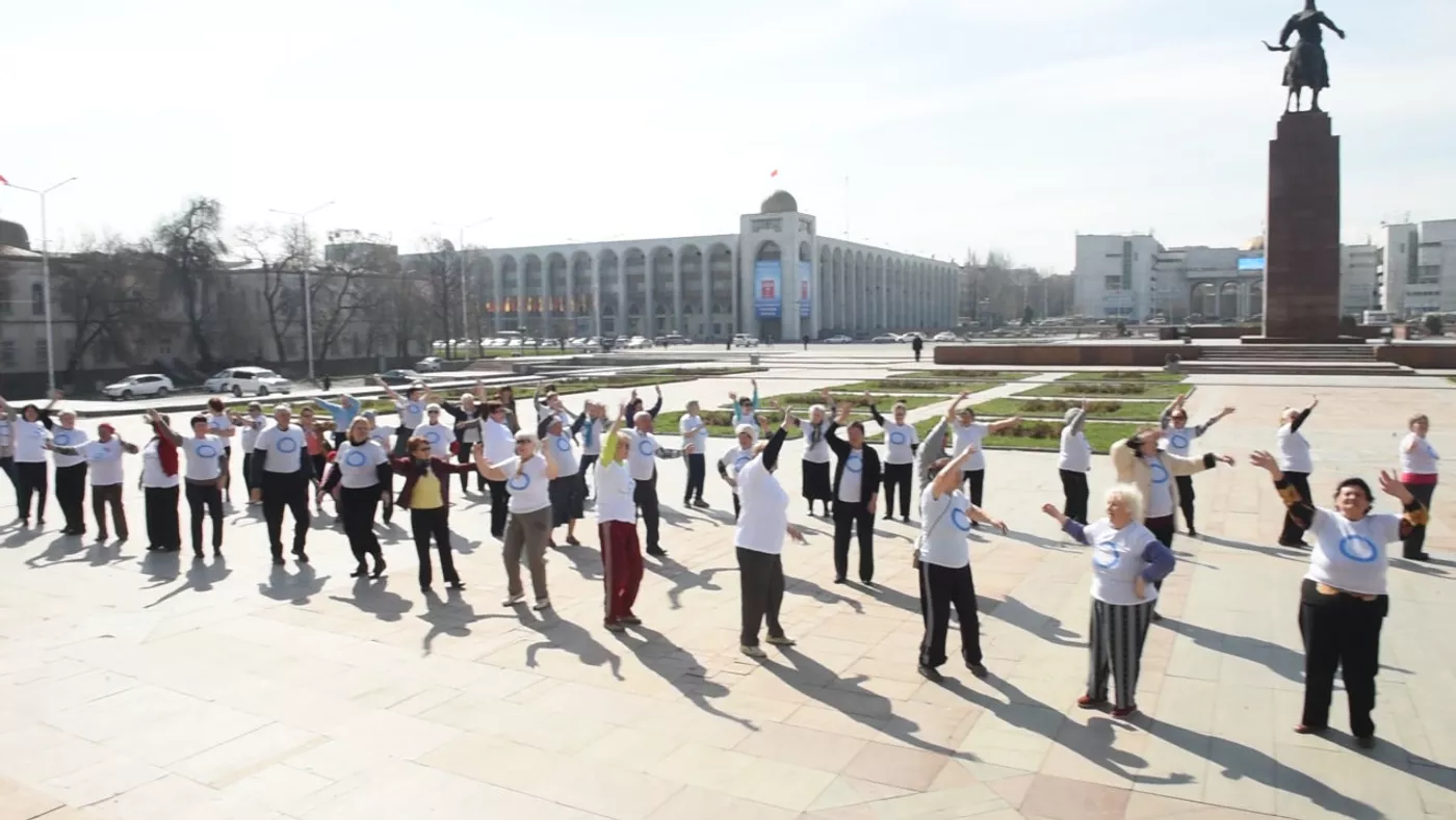 "Ала-Тоо" аянтында 6-апрелде "Мен сапаттуу медициналык тейлөөнү каалайм" аттуу флешмоб өтүп, ага пенсионерлер катышты.