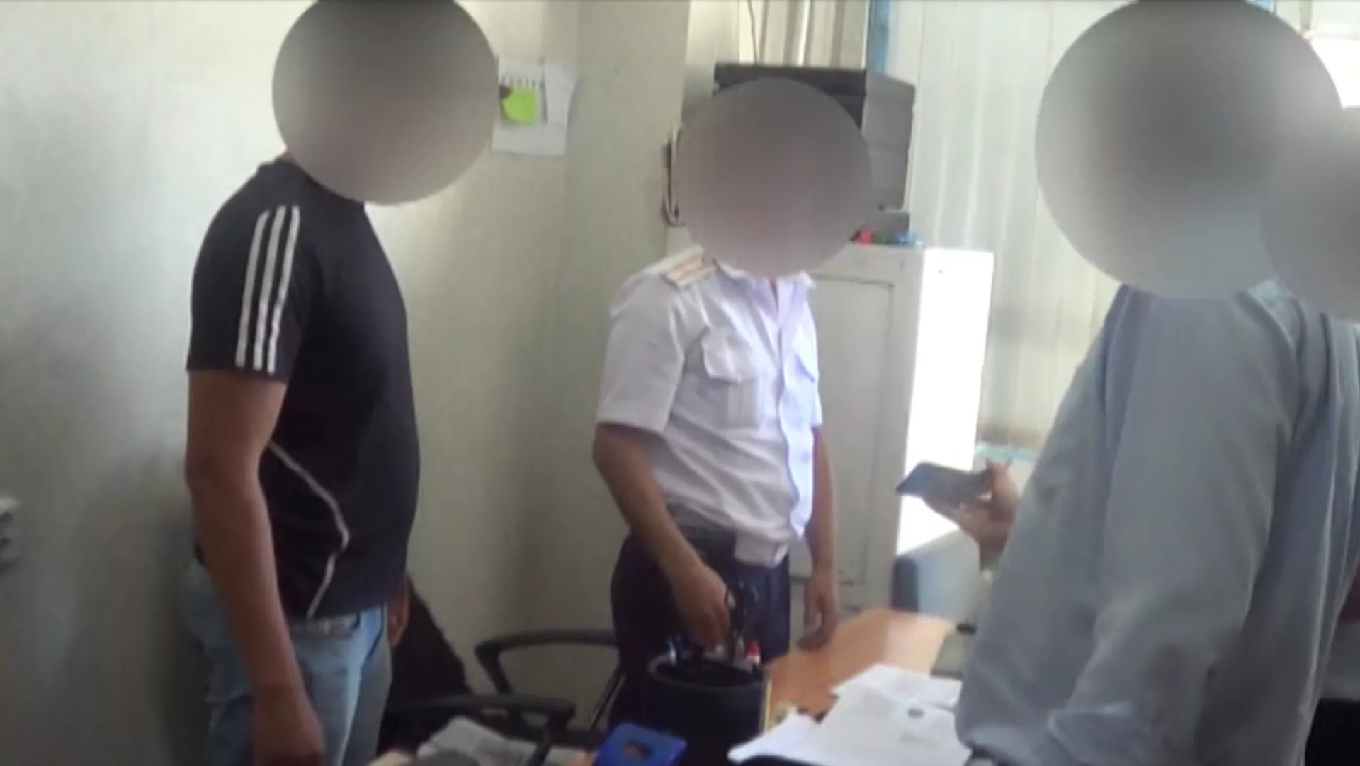 "Пара" деген белги коюлуп конвертке салынган акча Бишкек ИИББдин Жол кайгуул кызматынын инспекторунун иш бөлмөсүнөн табылды.