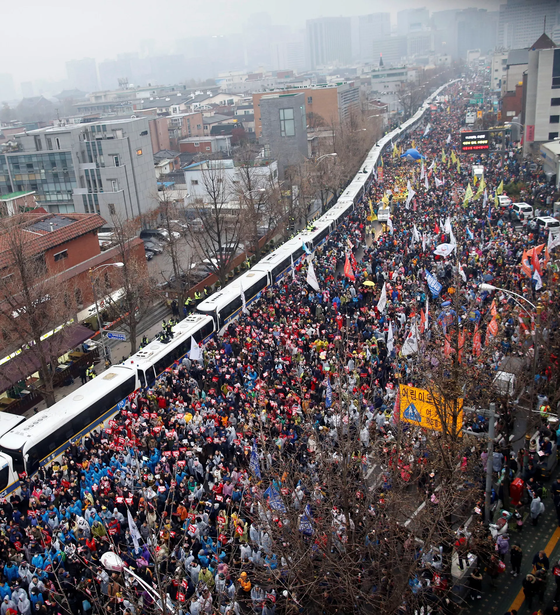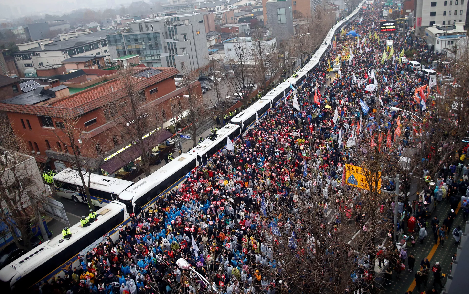 Ишемби күнү өткөн нааразылык акция кезектеги алтынчы иш-чара болду. Ага Түштүк Кореядагы оппозициялык үч партиянын, андан сырткары 1,5 ар кыл коомдук уюмдардын өкүлдөрү катышып жатат. Бул ирет нааразылыкка чыккандарга президенттин резиденциясына 200 метрге чейин чукул барууга уруксат берилген. Коопсуздукту камсыз кылуу үчүн 25 миң полиция тартылган.