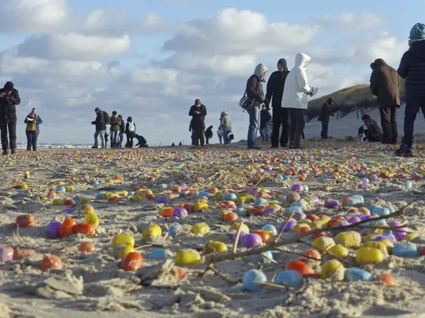 Ал эми Германиянын Лангеог аралынын жээгинде капысынан эле "Киндер-сюрприз" шоколады менен оюнчуктар пайда болуп калды.