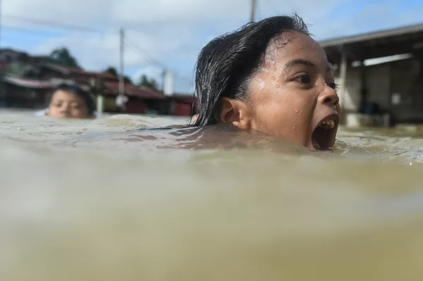 Малайзиянын чыгыш жээгинде миңдеген адам катуу жааган жаандын айынан өз үйлөрүн таштап кетүүгө мажбур болушту. Рантан Панжанг шаарында жашаган балдар, төрт күн бою токтобогон жаандан топтолгон сууда жүрүшөт