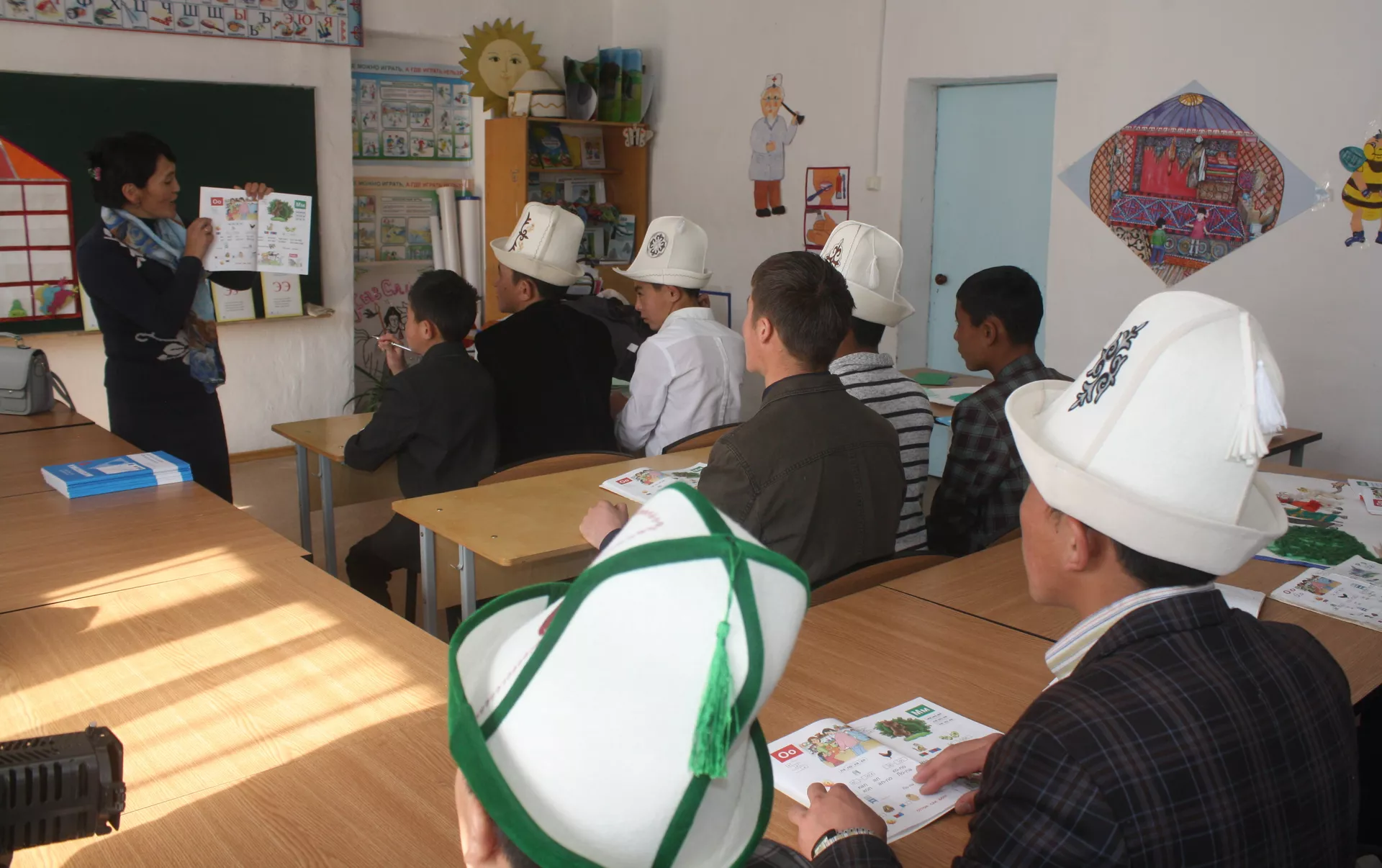 Ага ылайык, этникалык кыргыздарга Нарындан Куланак айылындагы Абдылда Аралбаев атындагы орто мектебинин башталгыч класстарынын мугалимдери сабак берүүдө.