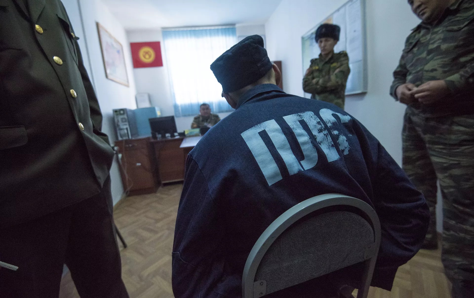 Маңдайымда кырк жаштагы, келишимдүү эле көрүнгөн киши отурат. Колдору кишенделген, ал эми күрмөсүнө "ПЛС" деген белги бастырылган — бул анын түрмөдөн эч качан чыкпастыгын түшүндүрөт.