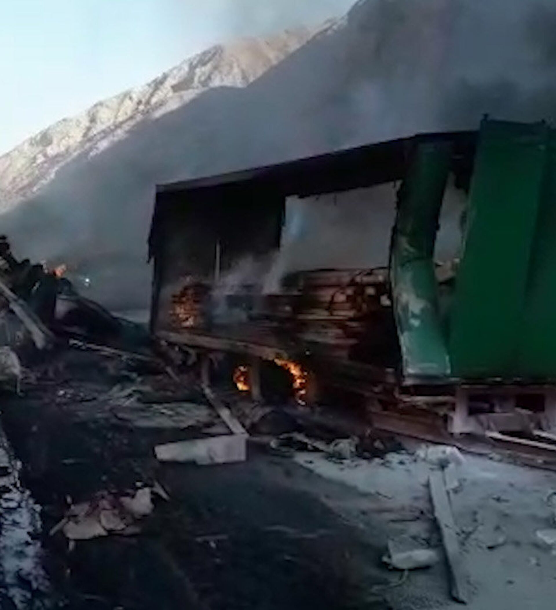 Бишкек — Нарын жолунда жүк ташуучу эки автоунаа кагышып, бирөө күйүп кеткенин күбө Sputnik Кыргызстан агенттигинин WhatsApp номери аркылуу билдирди.