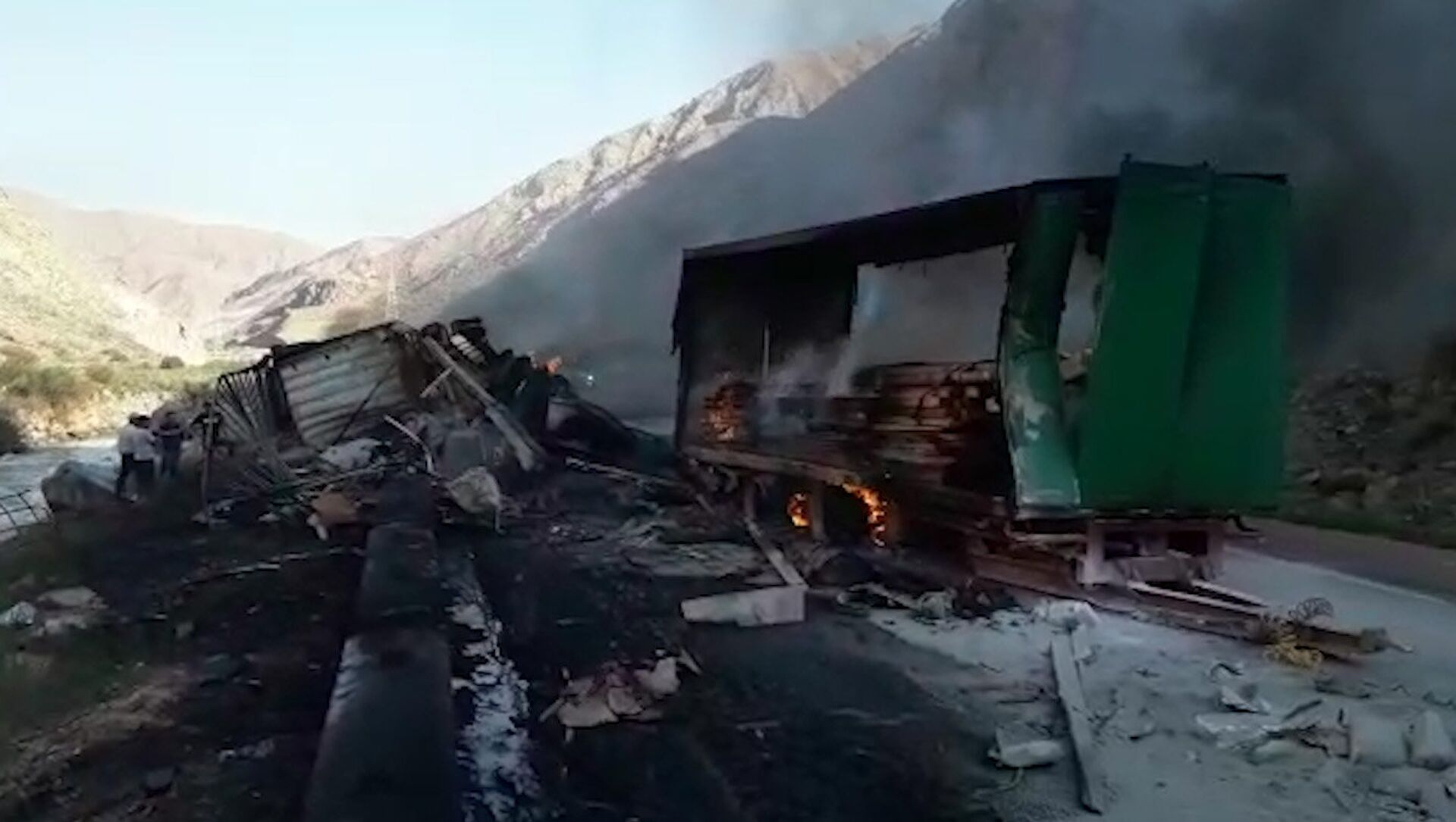 Күбө жиберген видеодо курулуш материалдары жүктөлгөн бир автоунаанын күйүп жатканын көрүүгө болот.
