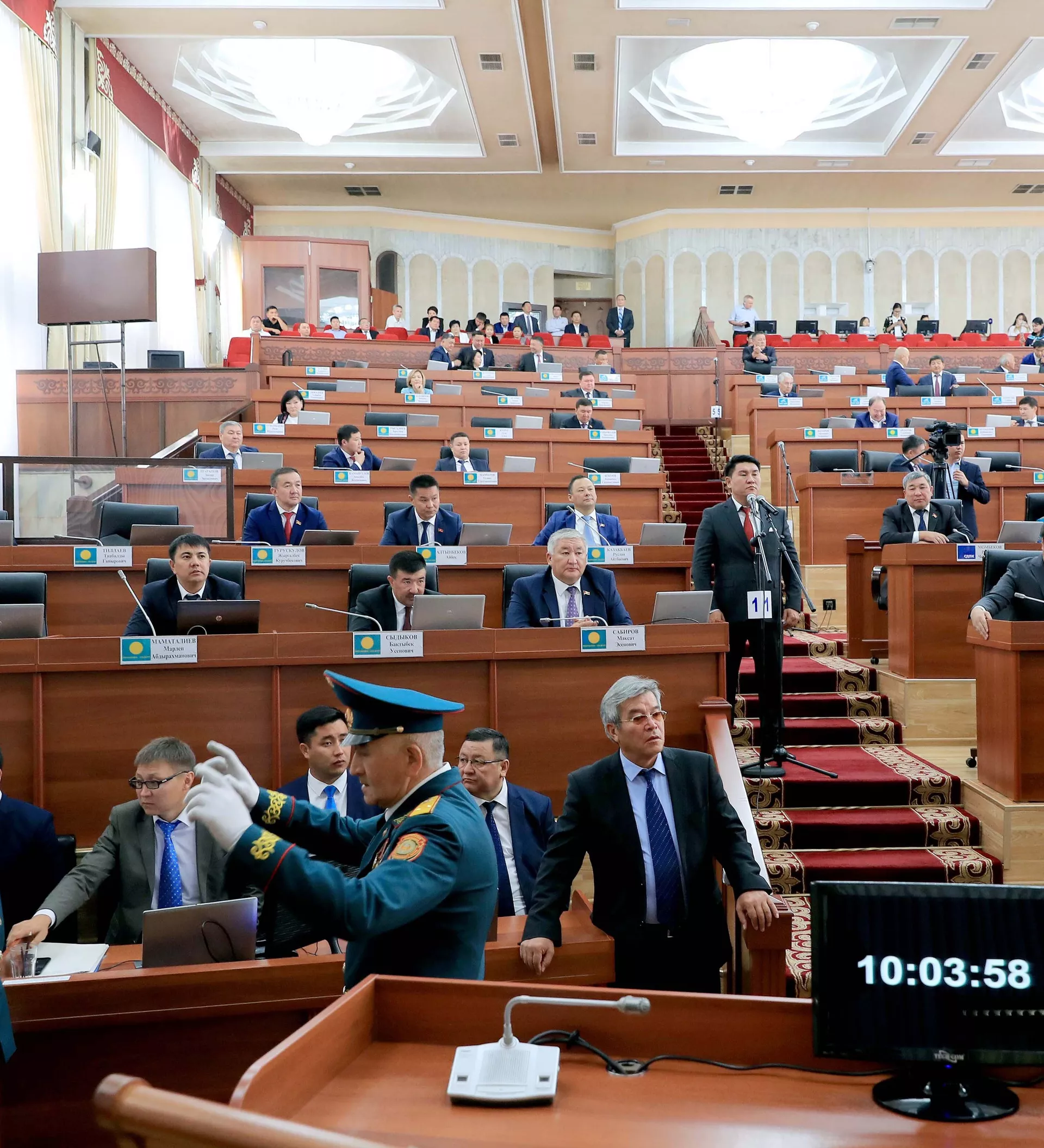 Жогорку Кеңештин маалымат кызматы айрым депутаттар кечигип жана чиптерин унутуп калгандыктан каттоодон өтүүгө жетишпей калган.
