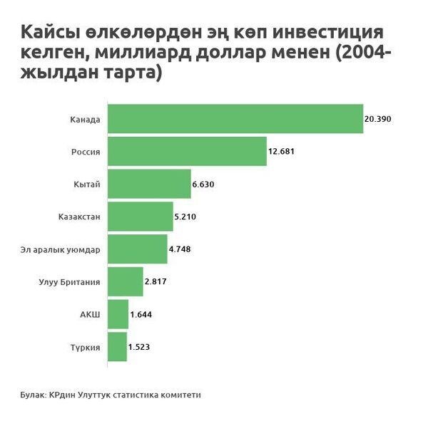 Улуттук статистика комитети инвестициялар боюнча маалыматты 2004-жылдан бери тизмектеп келет.