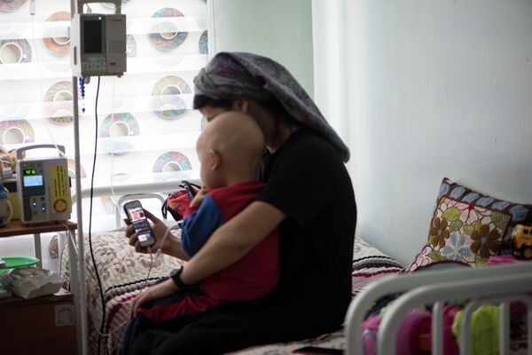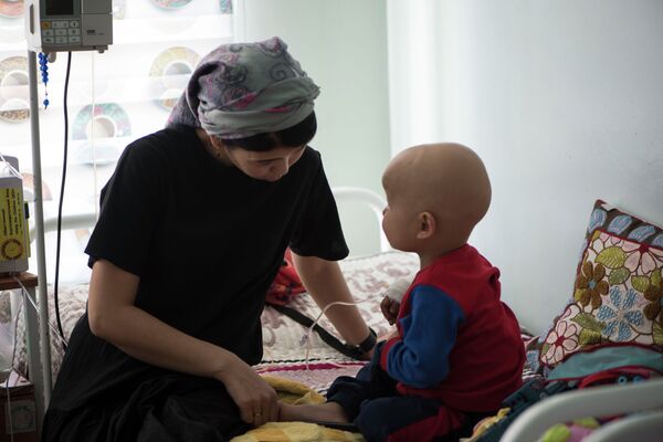 Биз барган учурда 3 жаштагы Медер алтынчы химиотерапиясын алып жатыптыр.