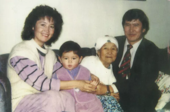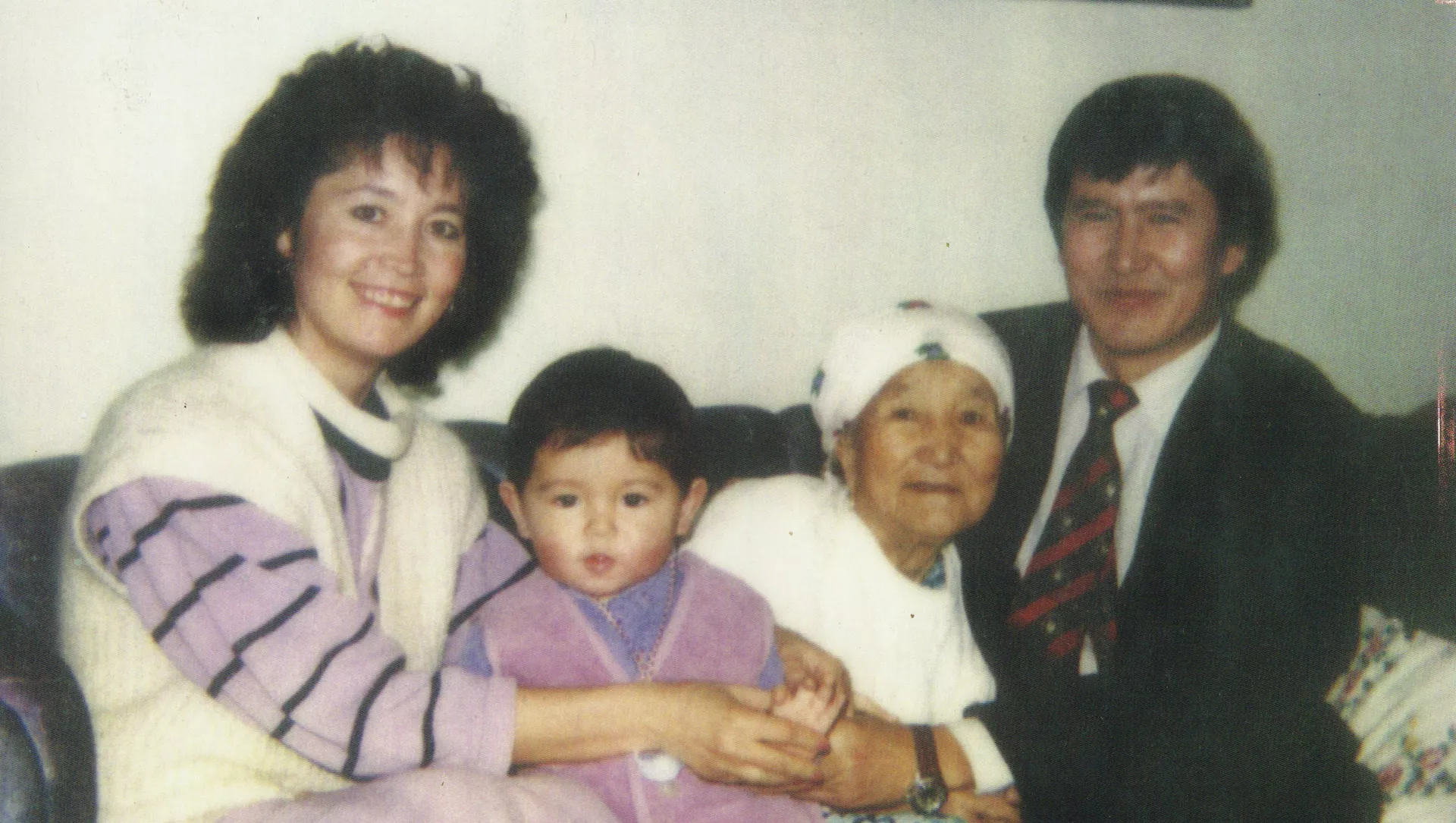 © Фото / из личного архива Алмазбека Атамбаева Экс-президент Алмазбек Атамбаев апасы Канымгүл Атамбаева менен. Жанында жубайы Раиса Атамбаева жана уулу Кадыр Атамбаев. Мурдагы ажонун апасы 1915-жылы туулуп, 1995-жылы февраль айында көз жумган. Сүрөт ошол жылдын январь айында тартылган.