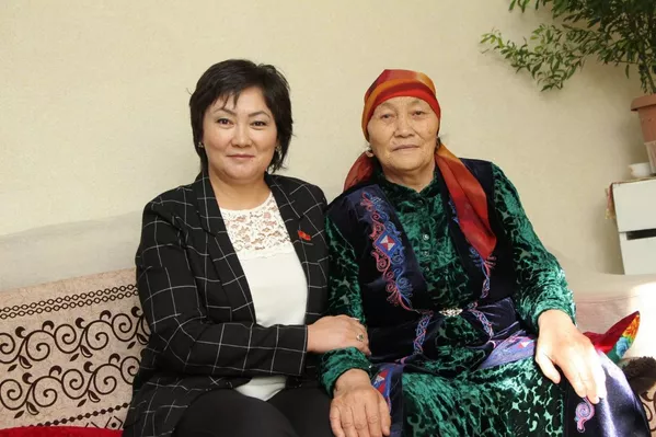 © Фото / Кубаныч Аманбеков Жогорку Кеңештин депутаты Жылдыз Мусабекова апасы Келгенбүбү Жумакадырова менен. Эл өкүлүнүн апасы 1951-жылы, 23-февралда төрөлгөн. Кызы экөөнүн жылы (коён) жана туулган күнү бир.