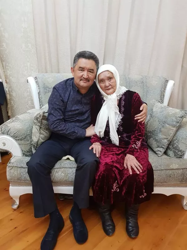 © Фото / из личного архива Алмазбека Батырбекова "Кыргызстан" фракциясынын лидери Алмазбек Батырбеков 80деги апасы Катя Мамбетова менен.