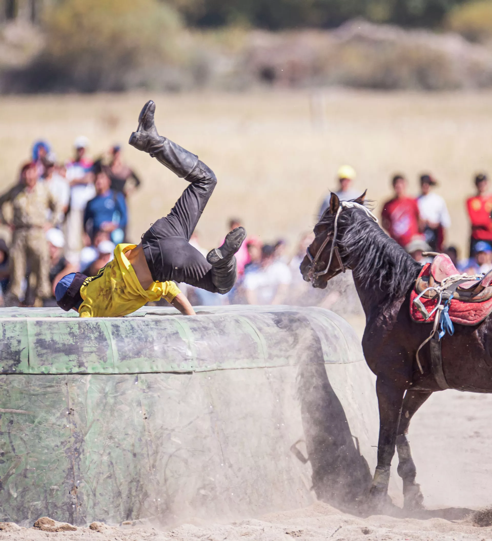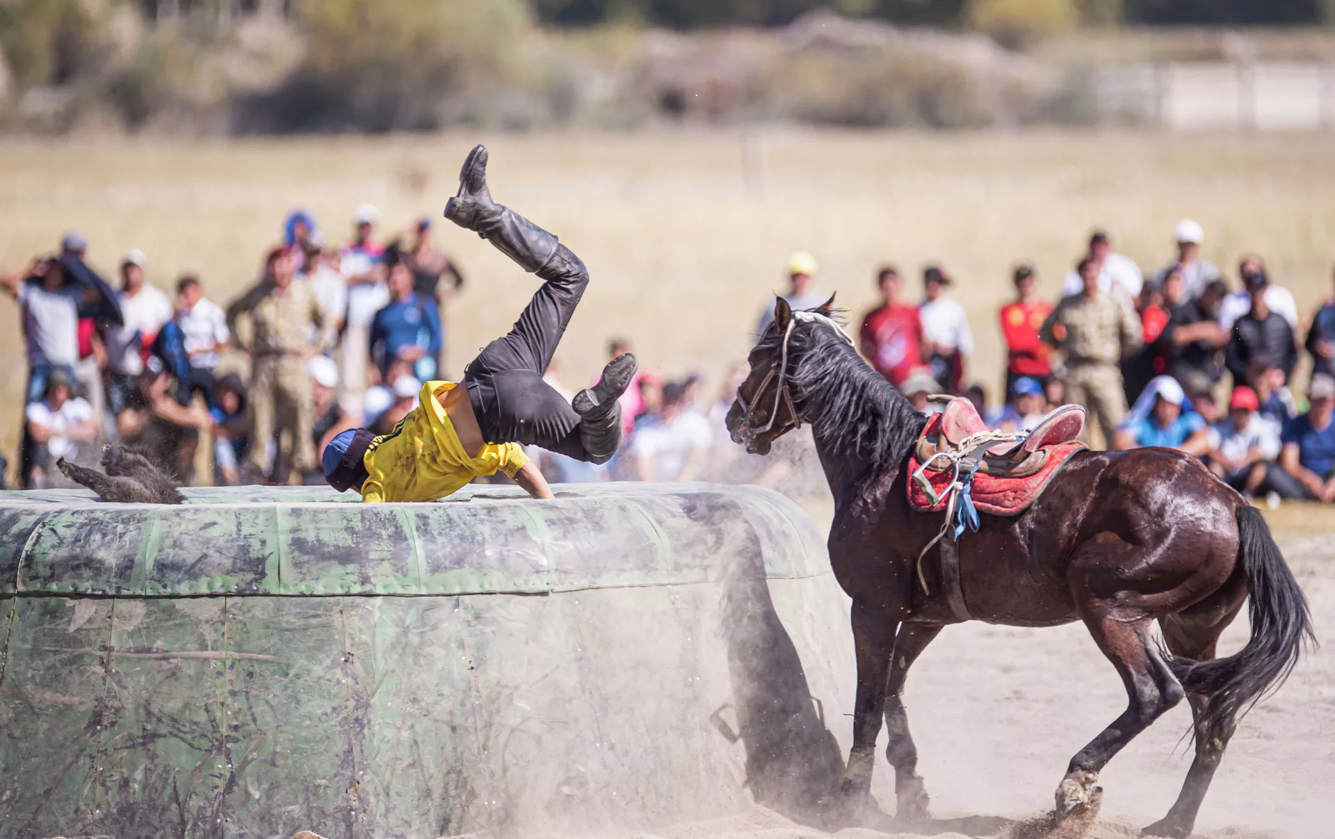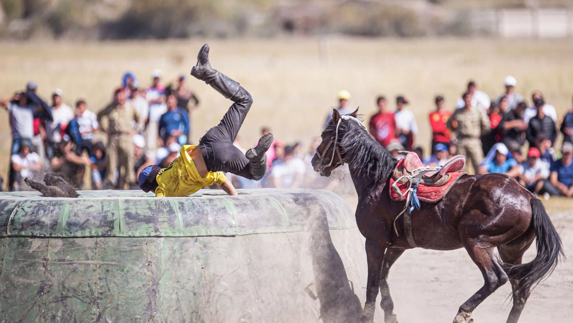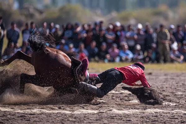 Манас Ниязов улакты жулуп чыгып чаң ызгыткан тейде чаап баратканда аты жыгылып, өзү үстүнөн ашып түштү. Бактыга жараша жаракат алган жок.