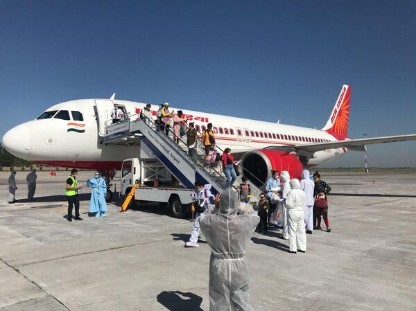 Билдирмеге караганда, Air India авиакомпаниясынын Дели-Бишкек чартердик каттамы менен келген мекендештерди "Манас" эл аралык аэропортунан тосуп алышкан.
