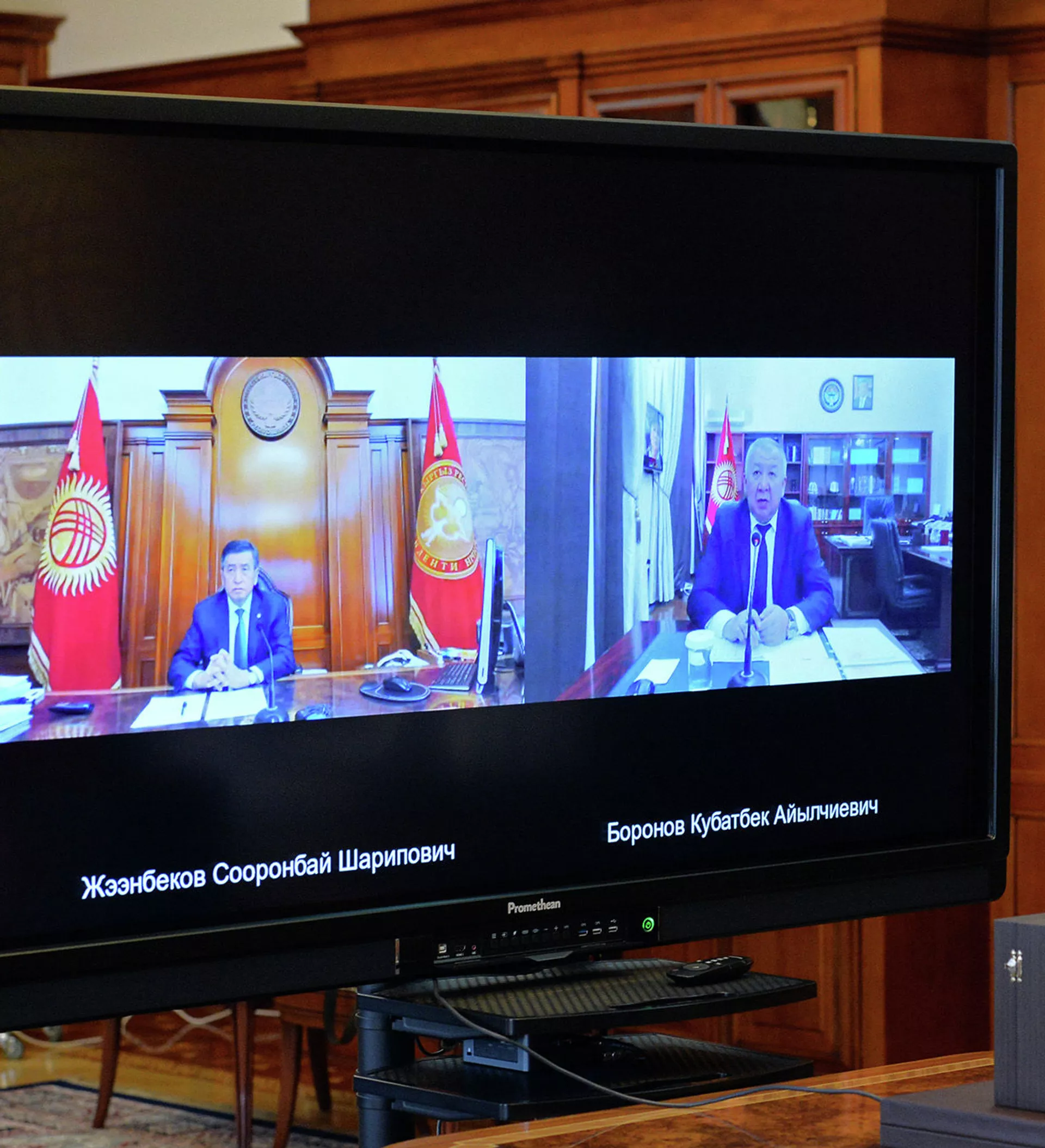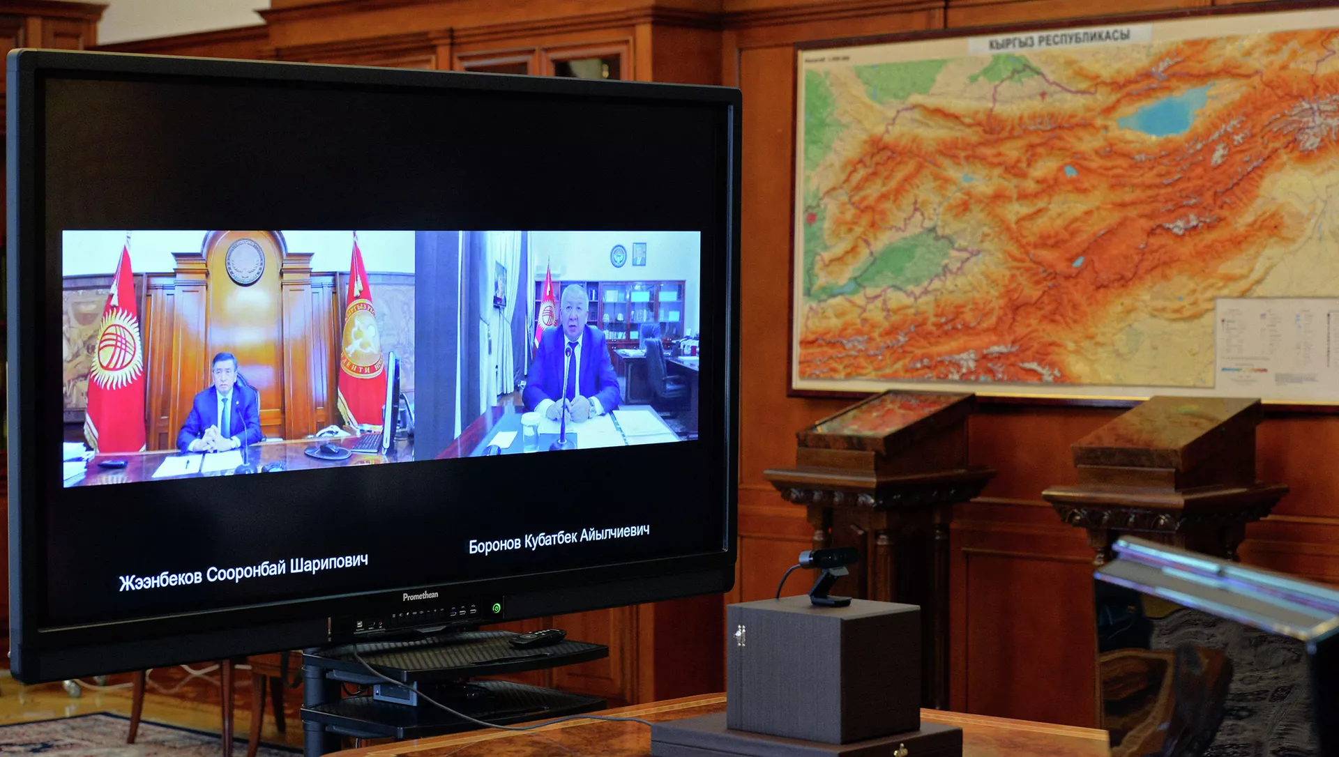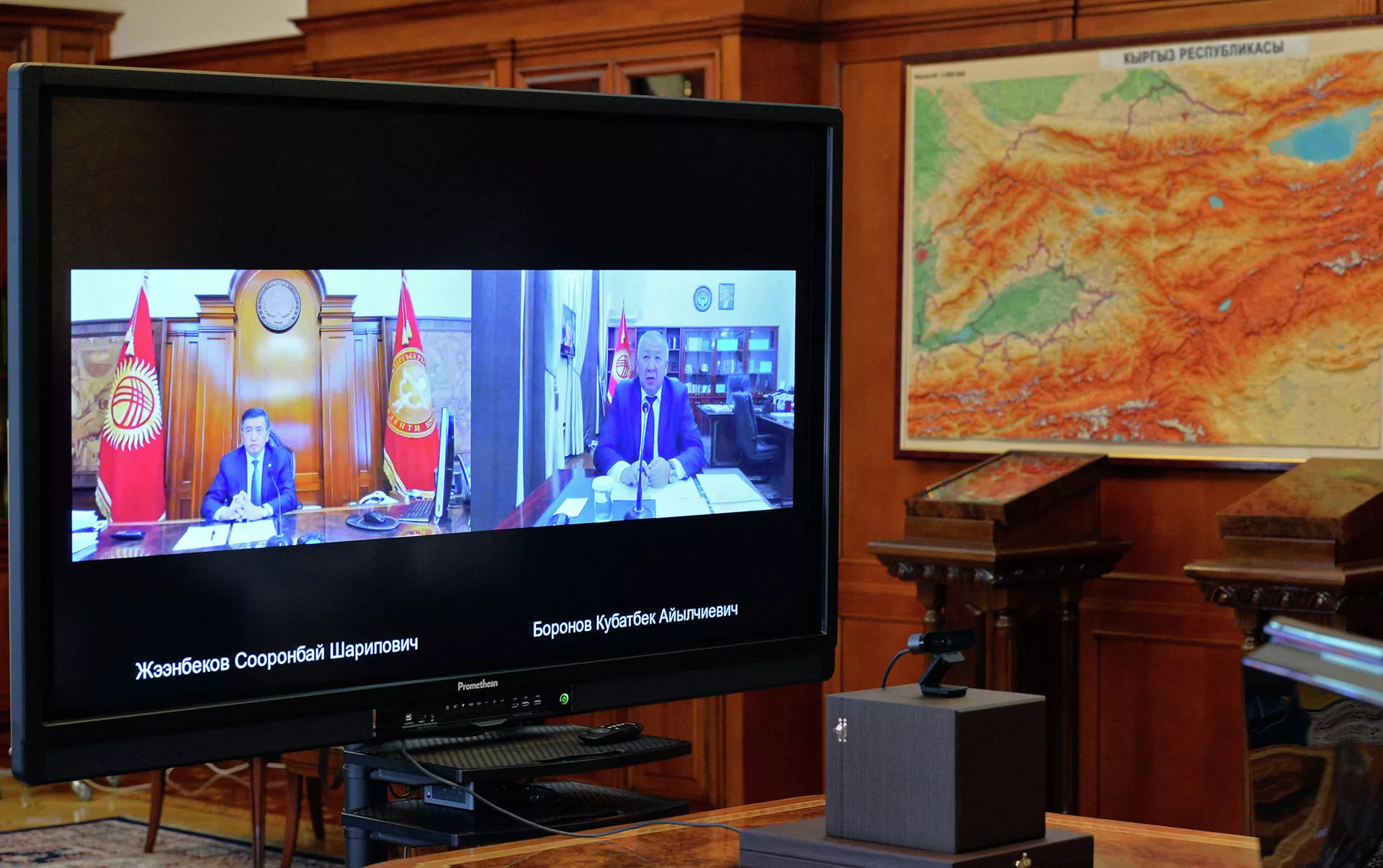 БИШКЕК, 13-июл. — Sputnik. Өлкө башчы Сооронбай Жээнбеков премьер-министр Кубатбек Боронов менен онлайн кеңешме өткөрүп, анда өлкөдөгү эпидемиологиялык кырдаалды турукташтыруу боюнча чаралар талкууланды. Бул тууралуу президенттин маалымат кызматы кабарлады.
