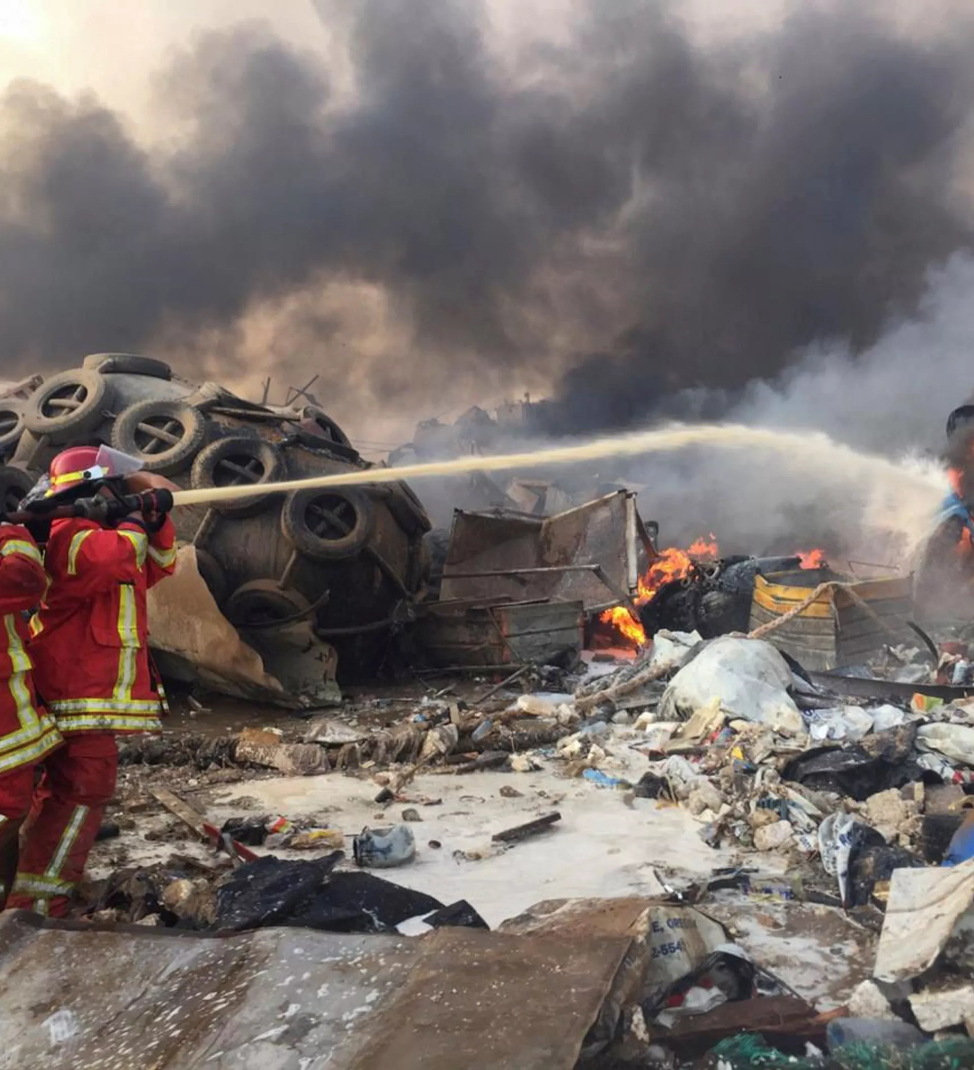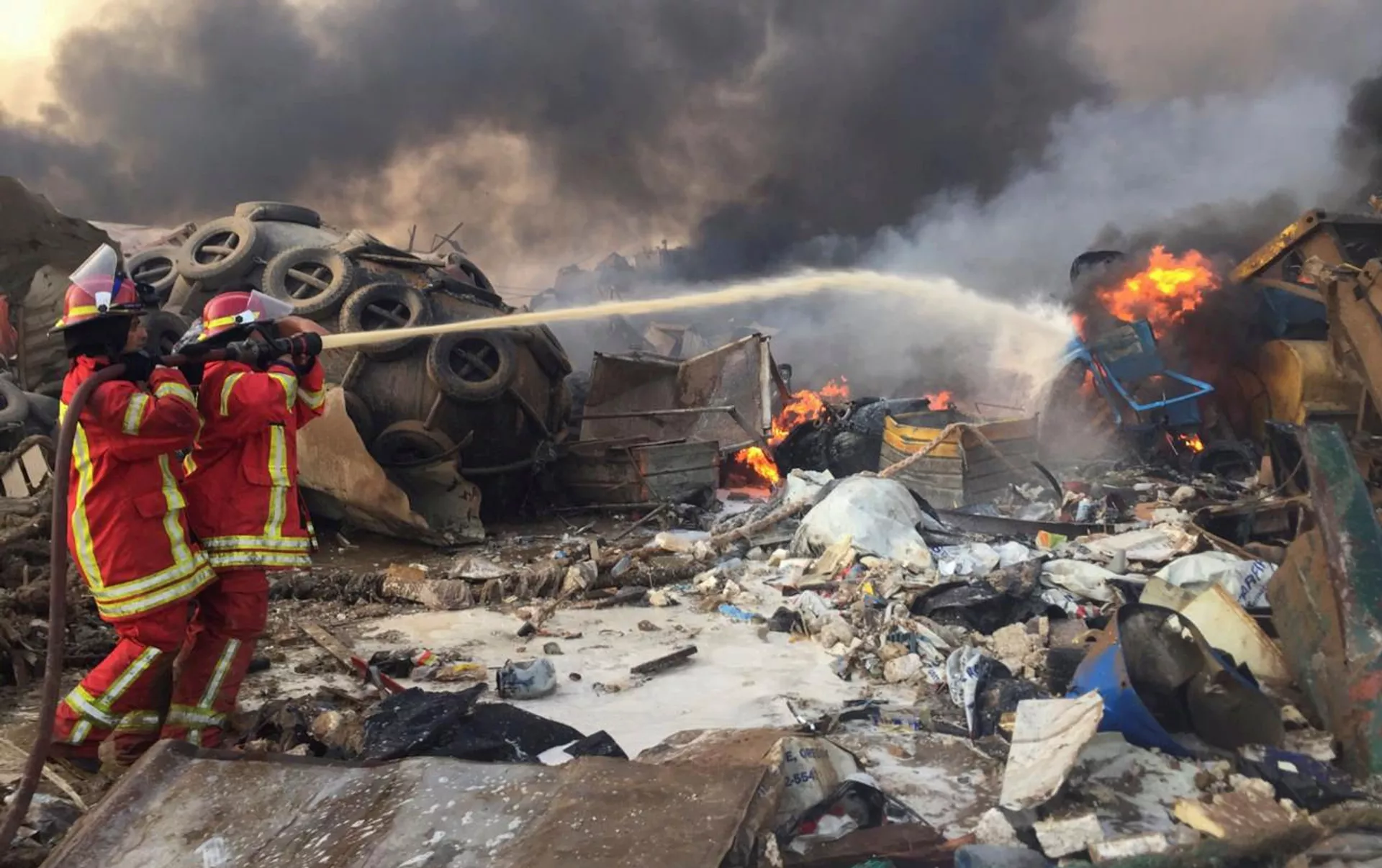 © REUTERS / Mohamed Azakir Бейруттагы жарылуудан чыккан өрттү өчүрүү