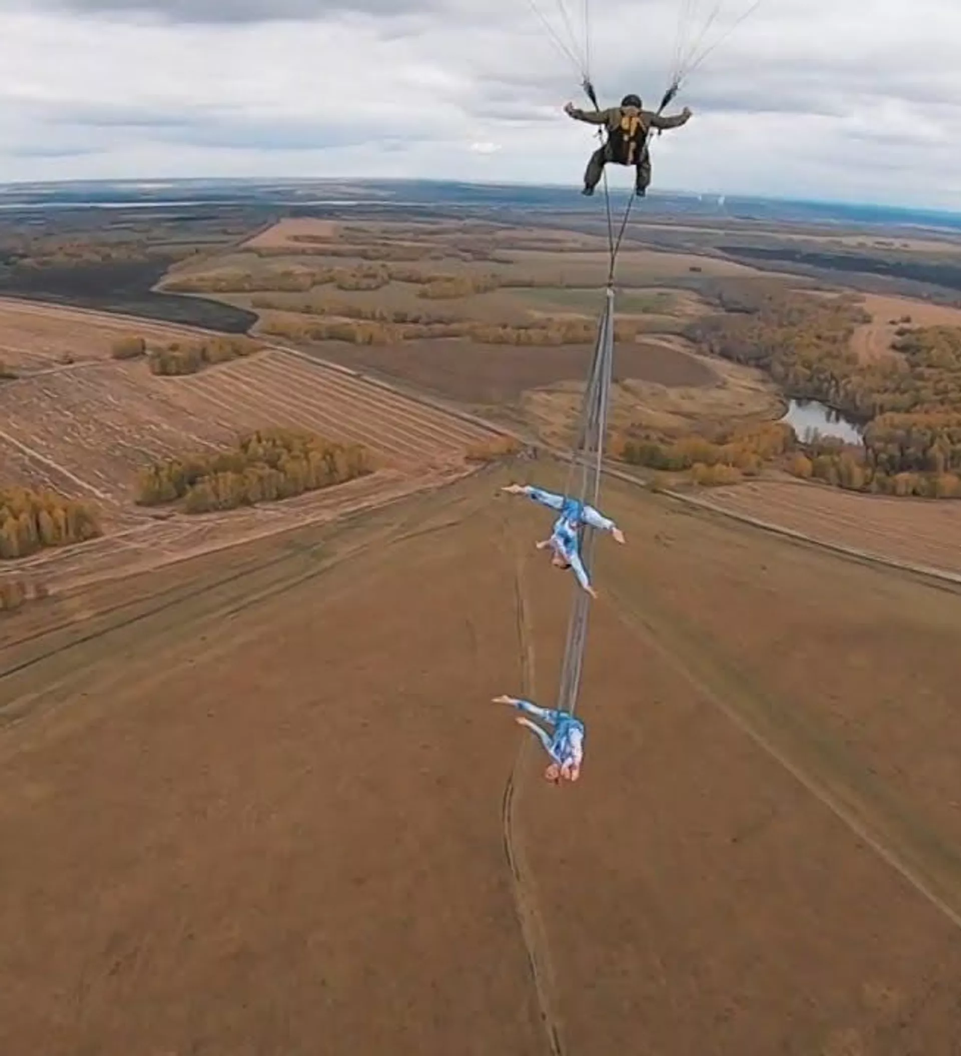 08:49 09.03.2021 (Жаңыртылды: 22:29 16.12.2021) Россиялык эки гимнаст параплан менен учуп баратып акробатикалык трюк көрсөттү. Алар абада учуп баратканына карабай коргоочу каражаттарды колдонушкан эмес.