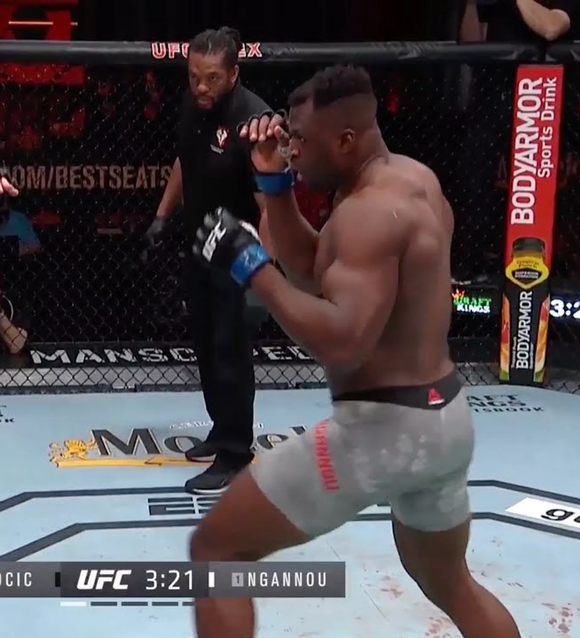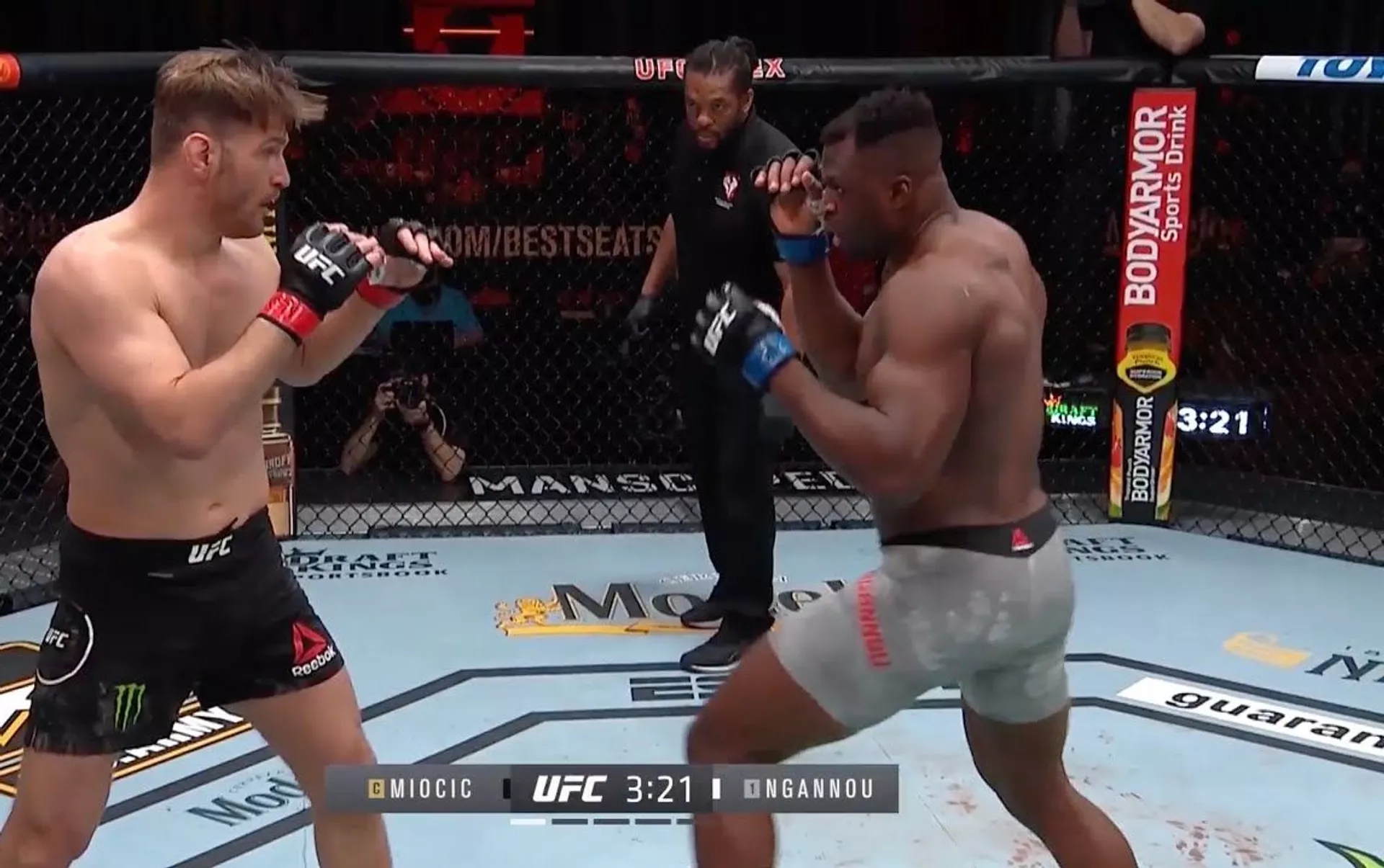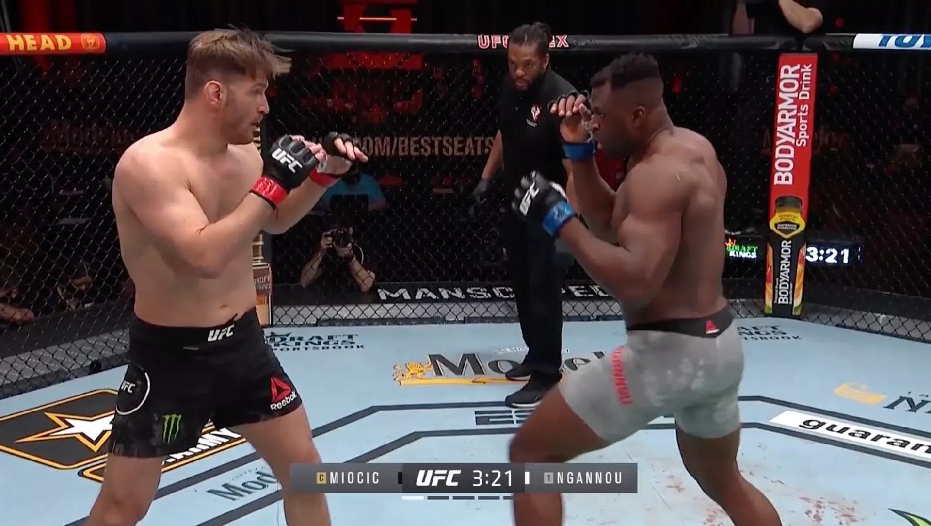 Миочич "Жырткыч" каймана аты менен таанымал Фрэнсис Нганну менен кез келген. Беттештин жүрүшүндө эле ал атаандашынын соккуларын көтөрө албай калган. Экинчи раундда нокауттан улам беттеш токтотулган.
