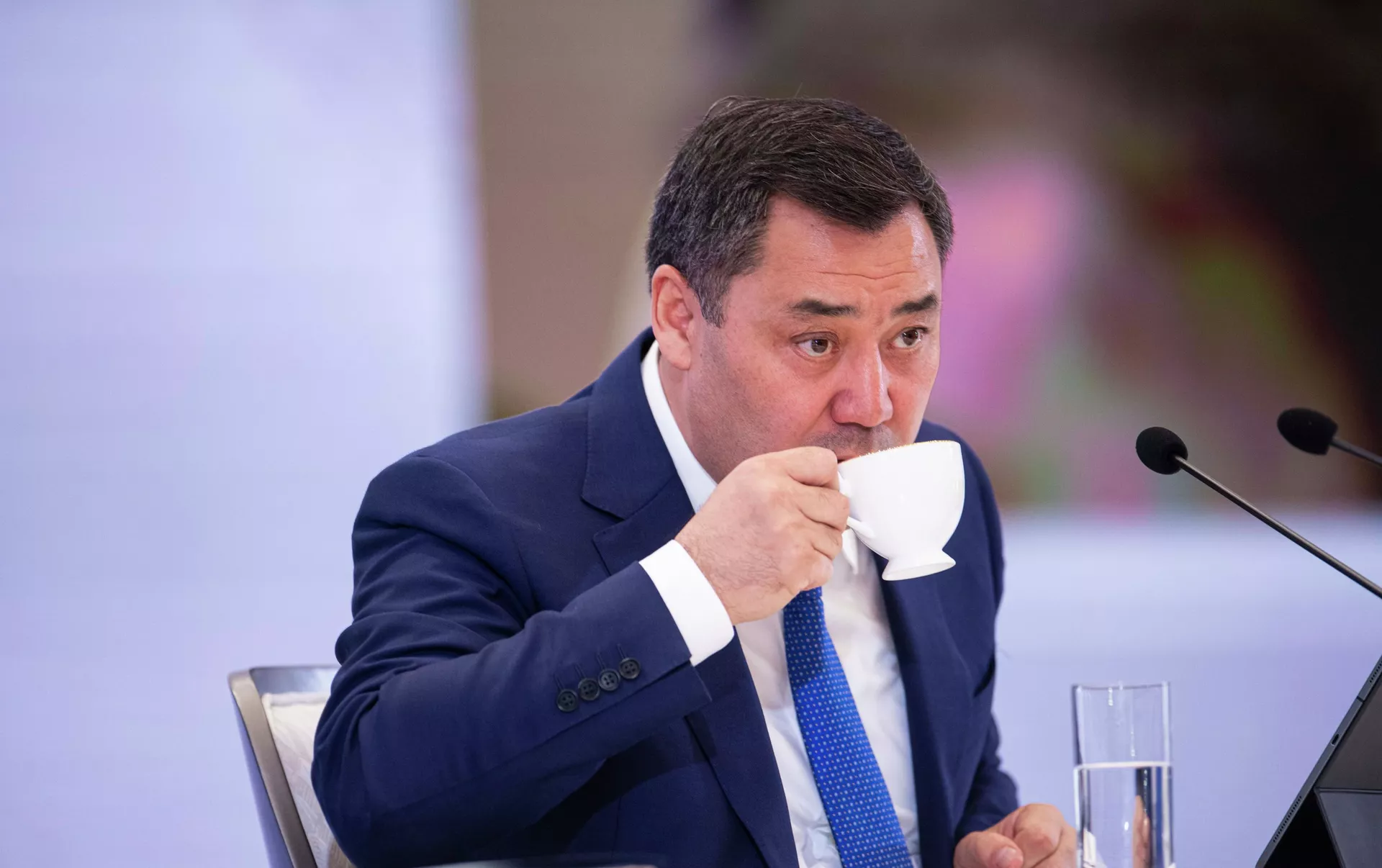 Маалымат жыйынына катышып жаткан чет элдик журналисттердин бири Садыр Жапаровду эң келишимдүү президентсиз деп, мамлекет башчынын өзүн да, залдагыларды да жылмайтты