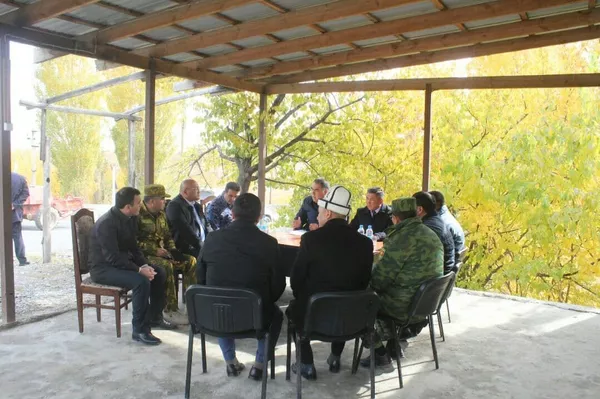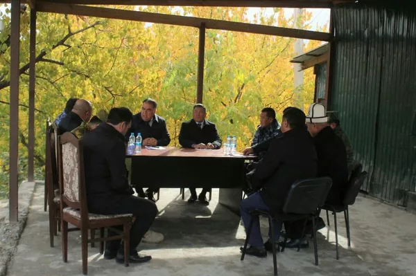 Жолугушууга президенттин Баткен облусундагы ыйгарым укуктуу өкүлү Абдикарим Алимбаев Баткен районунун акими, күч органдарынын жетекчилеринен турган топту баштап барды