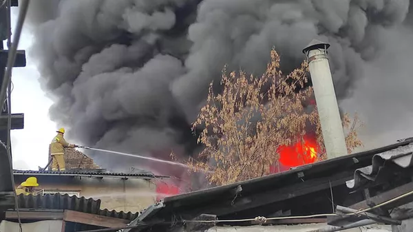 Бишкек шаарындагы Тимирязев көчөсү менен Жибек Жолу проспектинин кесилишинде күйүүчү май сакталган челектерден өрт чыкты. 21.12.2021, Sputnik Кыргызстан