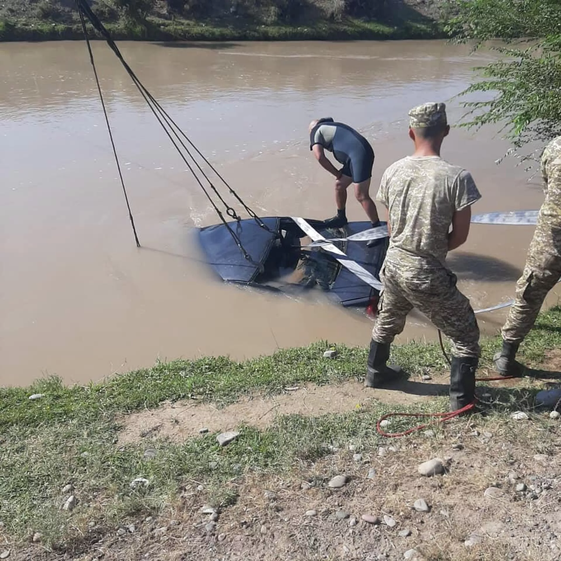 Жерине ӨКМден үч куткаруучу жана эки суучул тартылган. Алар автоунааны суудан чыгарып, кишинин сөөгүн ИИМ кызматкерлерине өткөрүп берген.