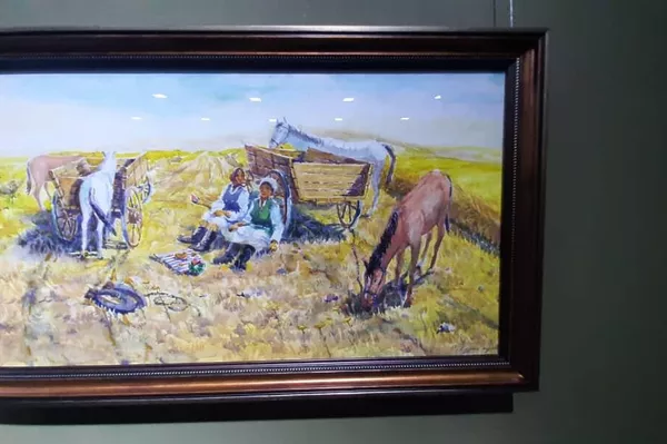 — Ошто сүрөт көргөзмөсү өтүп, Бишкектен сүрөтчү Юристанбек Шыгаев барып 2-3 сүрөтүмдү сатып алмак болду. Бирок экөөбүздүн ортобузда түшүнбөстүк болуп мен бербей койдум. Анткени анын “акчасын кийин аласың” дегенине көнбөдүм. Ошол сүрөттөрүм дагы эле жанымда. Бирин кечээ Бишкектеги көргөзмөдө галереяга алып коюшту. Калгандары “Курманжан датка” жана “Курманжан датканын уулун дарга асуу” темасындагы көлөмдүү жакшы эмгектеримди алып келген эмесмин. Булар Баткендеги өзүбүздүн галереядан орун алат деген ой бар.