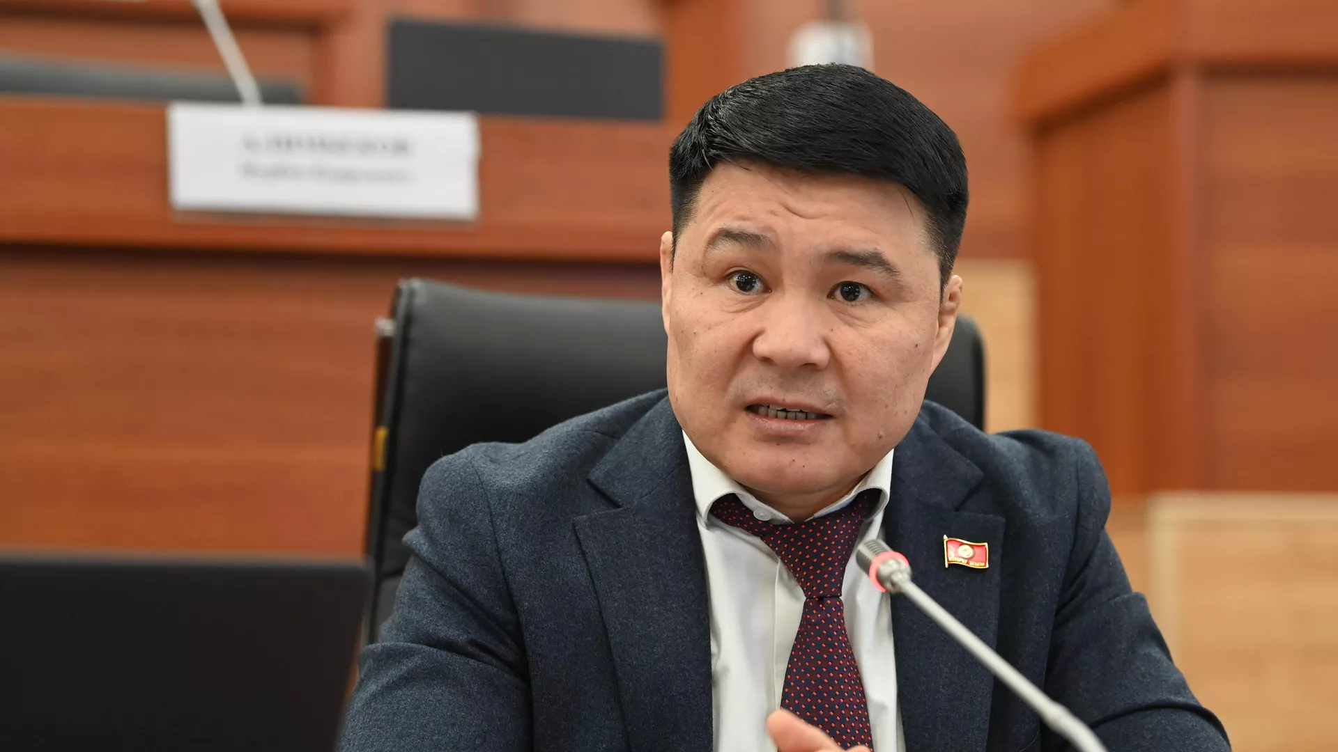 "Кээ бир коррупционерлер, 100 миң доллар же башка менен кармалгандар бүгүнкү күндө акыл үйрөтүүдө. Соцтармак аркылуу депутаттарга да сын таккан ушундай бир акмактар болуп атат. VI чакырылышта коррупционерлерди жана балдарын мамкызматка албоо боюнча мыйзам долбоорун сунуштадым эле, ушуга пикириңиз кандай", — деп сурады депутат баш прокурор Курманкул Зулушевден.