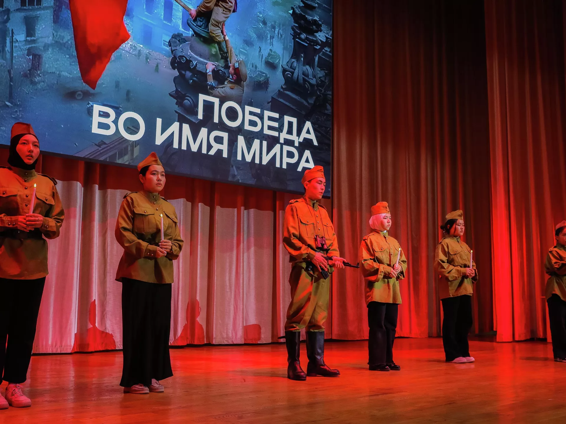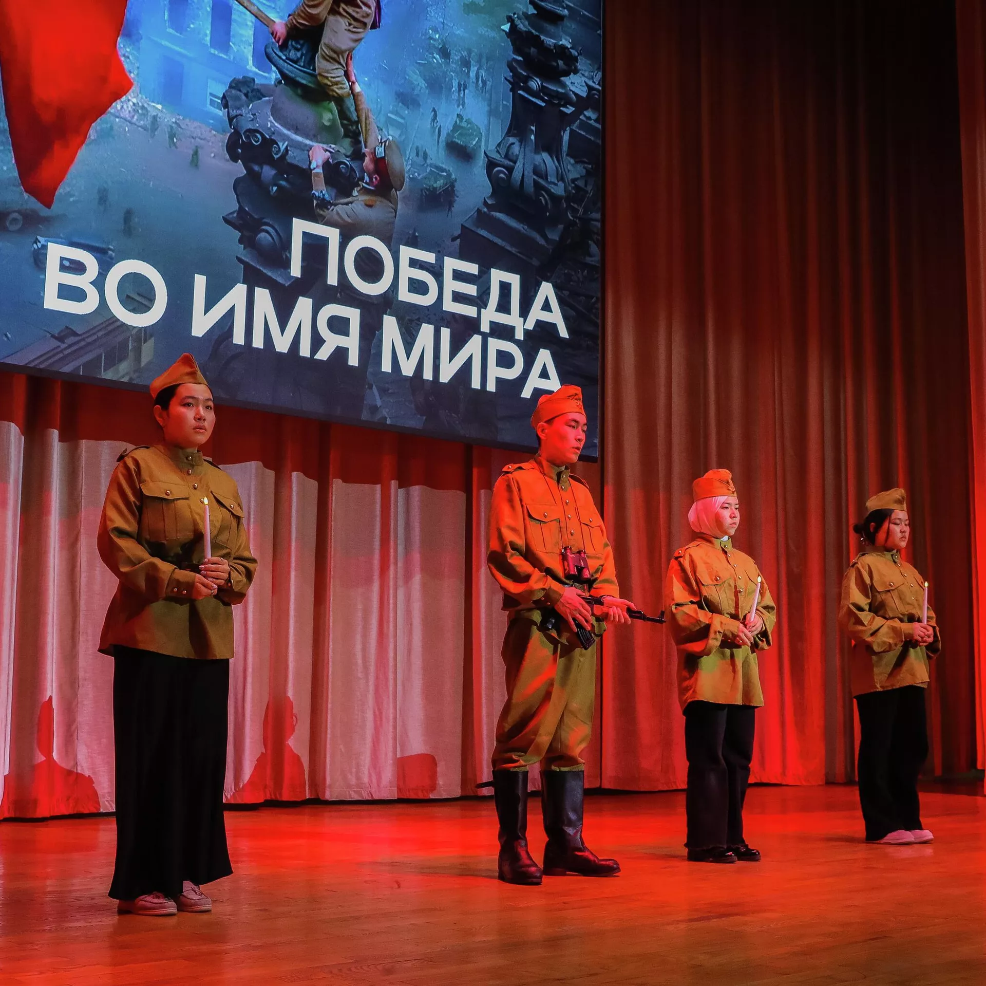 БИШКЕК, 6-май — Sputnik. Кыргыз-Россия Славян университетинде "Тынчтык үчүн жеңиш" аталышындагы жаштар фестивалы өттү. Бул тууралуу КРСУнун маалымат кызматы билдирди.Иш-чаранын алкагында студенттер тарабынан ыр, бийлер тартууланды.КРСУнун ректору Денис Фомин-Нилов ата-бабалардын эрдигин жана тынчтыкты орнотууга умтулуусун эскерип туруунун маанилүүлүгүн белгиледи.