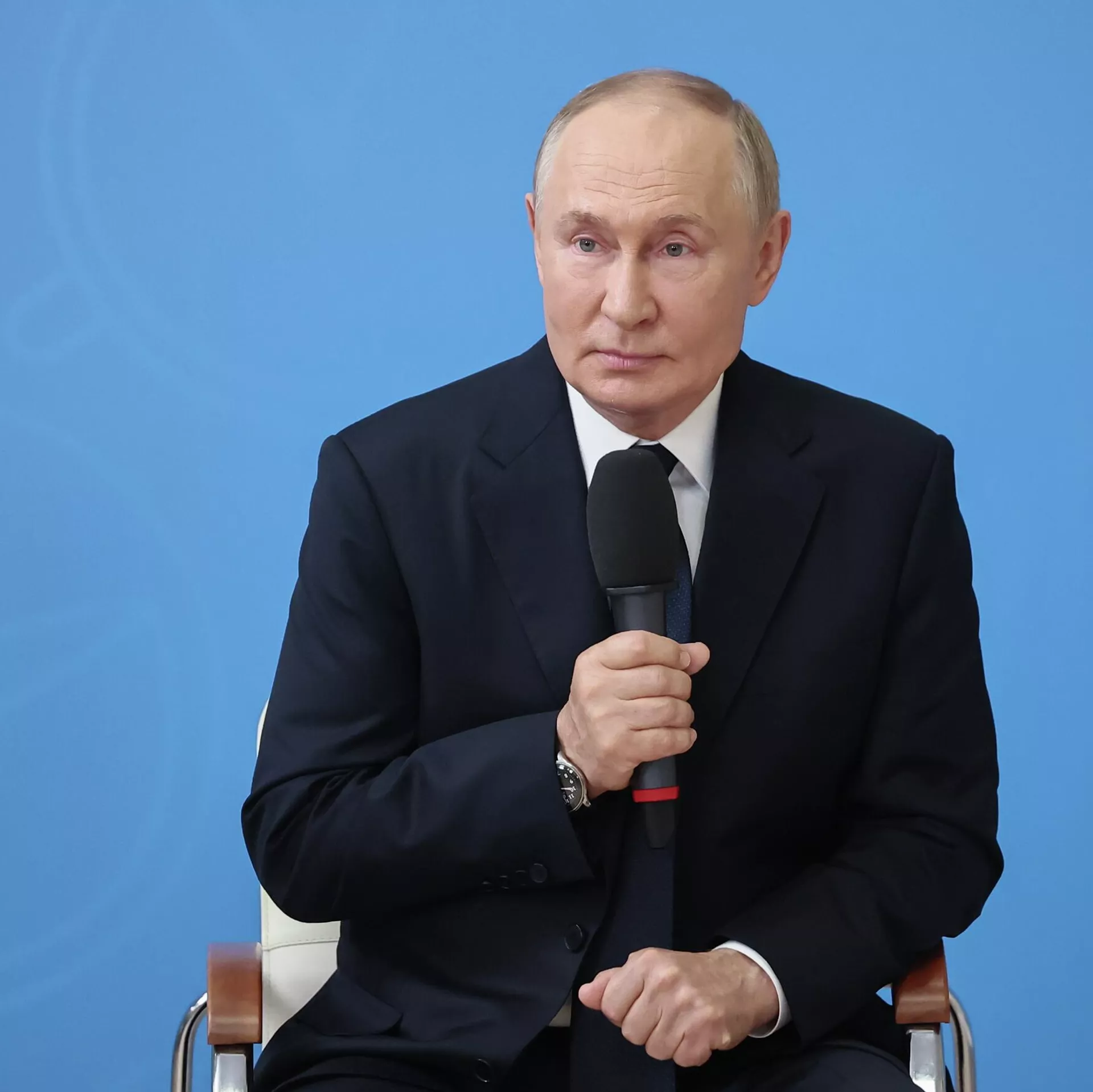 БИШКЕК, 2-сен. — Sputnik. Украинанын азыркы бийлиги президенттик шайлоо өткөрүүгө даяр болбогондуктан согуштук аракеттерди токтотууга кызыкдар эмес. Бул тууралуу РФ президенти Владимир Путин Кызыл шаарындагы мектепте ачык сабак өтүп жатканда айтканын РИА Новости жазды. Анын айтымында, эгер согуштук аракеттер токтотулса бийлик аскердик абалды жоюшу керек болот.