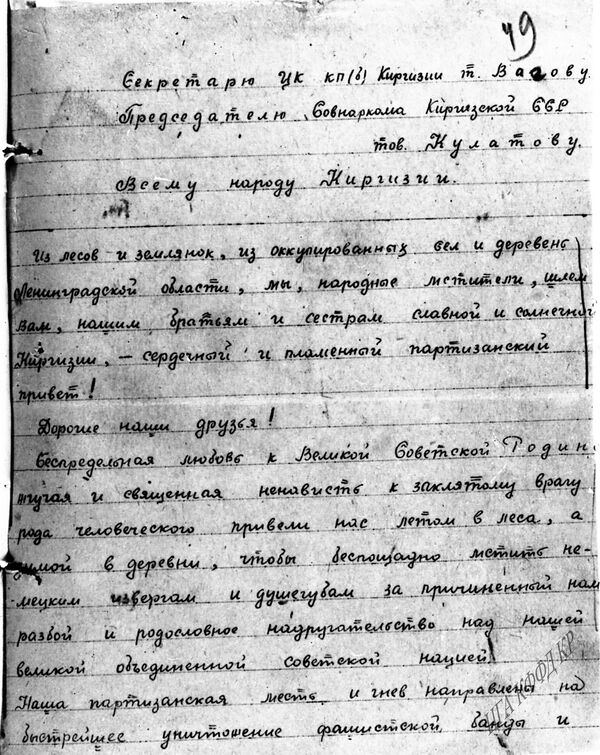 Ленинграддык партизандар кыргыздарга кат жазып... Сүрөттөрдө калган тарых