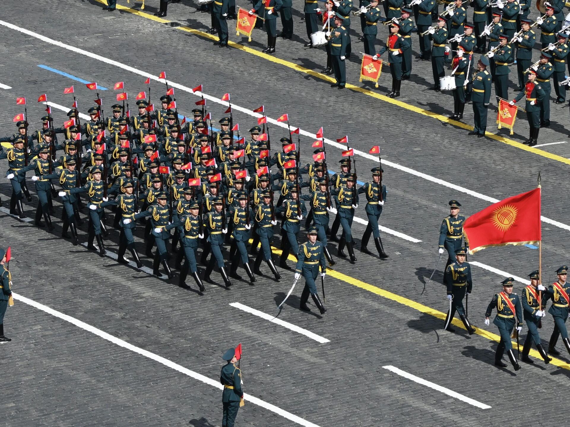 БИШКЕК, 9-май — Sputnik. Москвадагы Кызыл аянтта Кыргызстандын Куралдуу күчтөрүнүн Улуттук гвардиясы басып өттү.