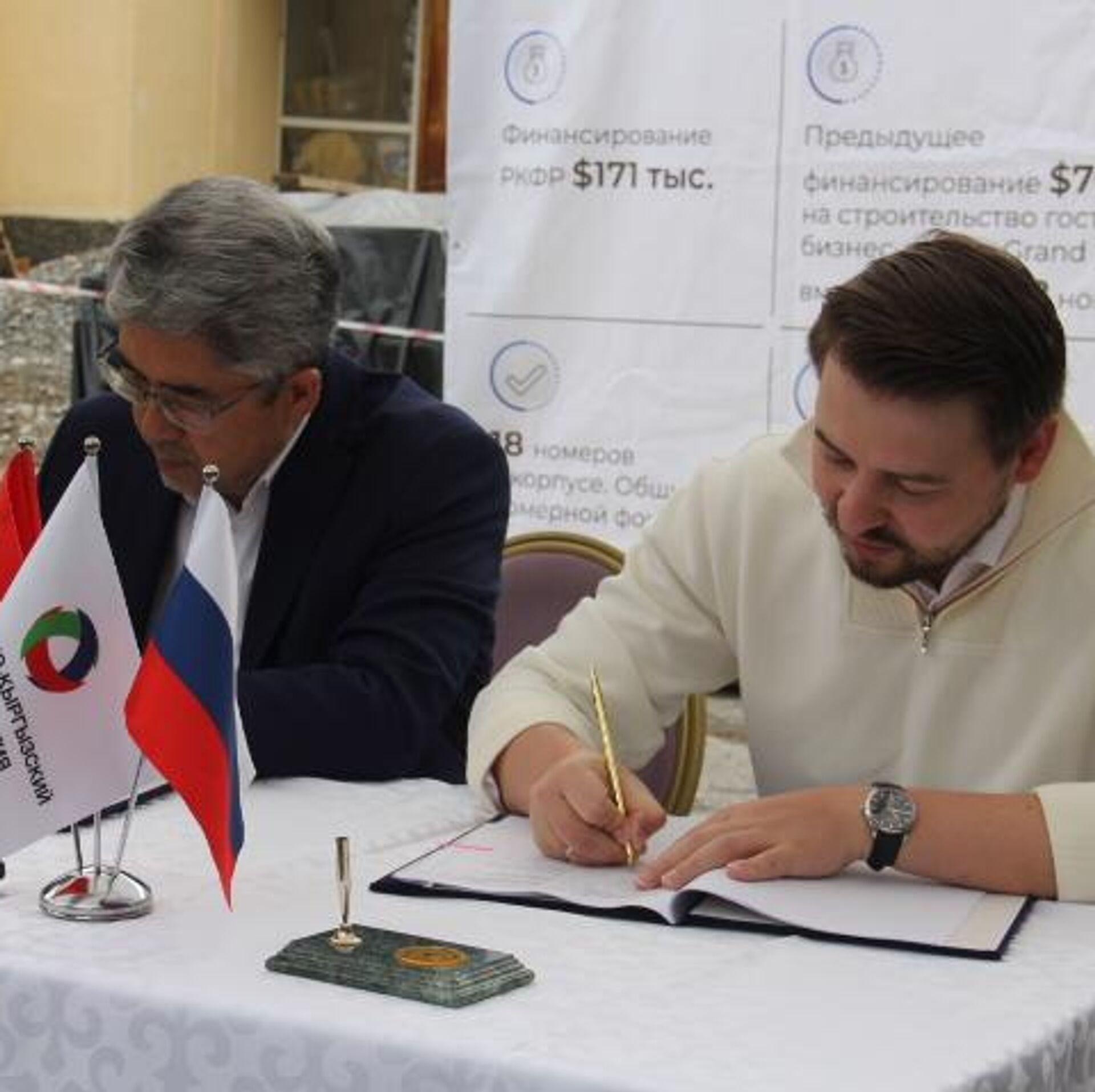 Алгач Нарын шаарындагы "Хан-Теңир" мейманкана комплексинин реконструкциясын каржылоо боюнча меморандумга кол коюлду. Бул долбоор Россия-Кыргыз өнүктүрүү фонду тарабынан каржыланууда. Фонддун жетекчиси Артём Новиков жана мейманкананын ээси Таалай Карпеков 171 миң доллар насыя берүү боюнча макулдашууга жетишти. Реконструкция иштери быйылкы июль айында жыйынтыкталмакчы.
