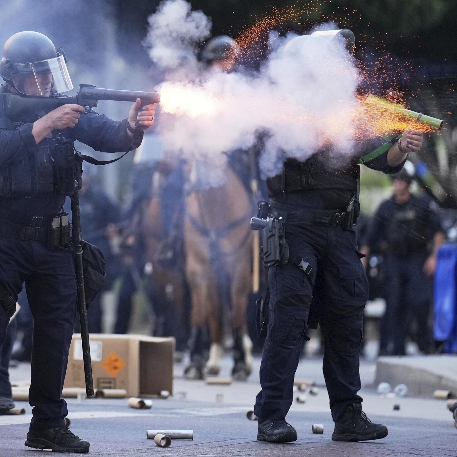 БИШКЕК, 10-июн. — Sputnik. Лос-Анжелестин полициясы нааразы болуп көчөгө чыккандарды тандап кармап, желим ок менен атып жатканын