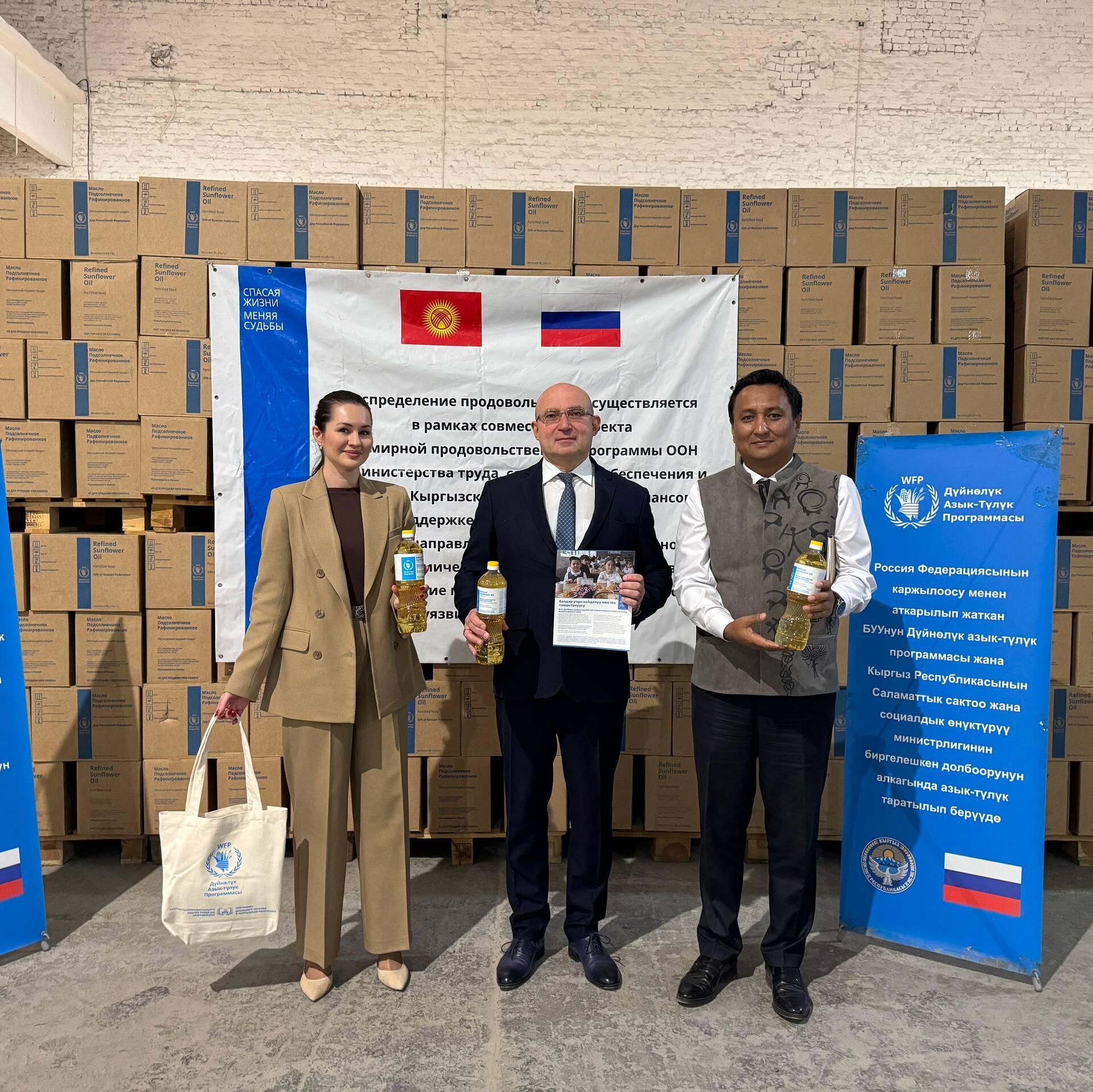 Азык-түлүктү тапшыруу салтанатына башкы консулдун милдетин аткарып жаткан Валерий Катункин жана үчүнчү катчы Анастасия Егерева катышкан.
