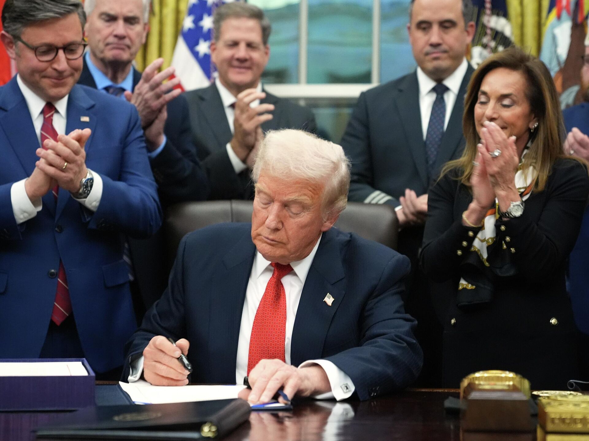 РИА Новости өлкө башчы документке Ак үйдөгү расмий иш-чарада кол койгонун жазды. Трамптын айтымында, шатдаундан улам мамлекет 1,5 триллион долларлык чыгым тарткан. Бир миллиондон ашуун киши айлык албай, 20 миңдей авиакаттам