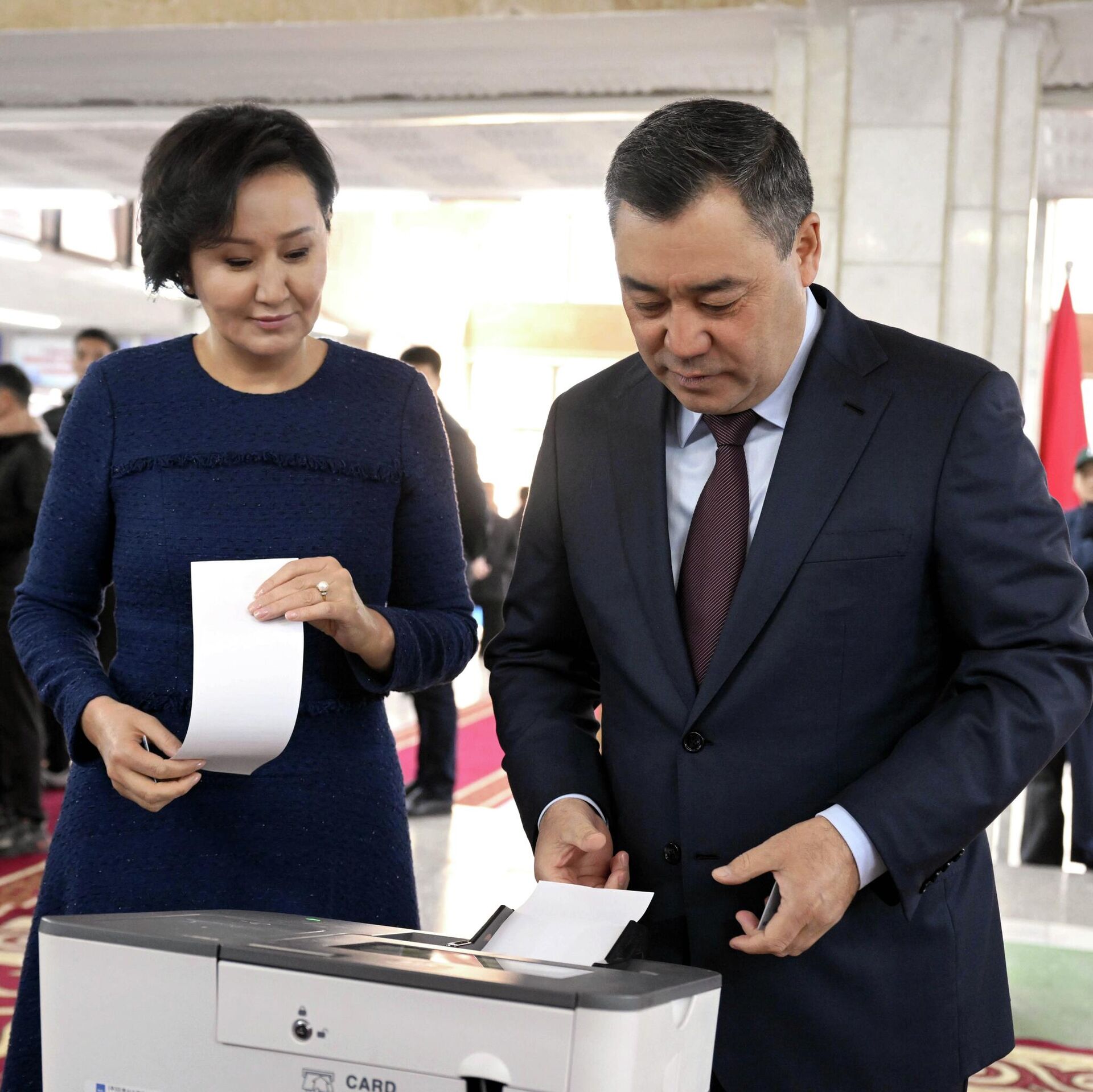 БИШКЕК, 30-ноя. — Sputnik. Президент Садыр Жапаров канайым Айгүл Жапарова менен Бишкек мамлекеттик университетинин имаратынан добуш бергенин маалымат кызматы билдирди.