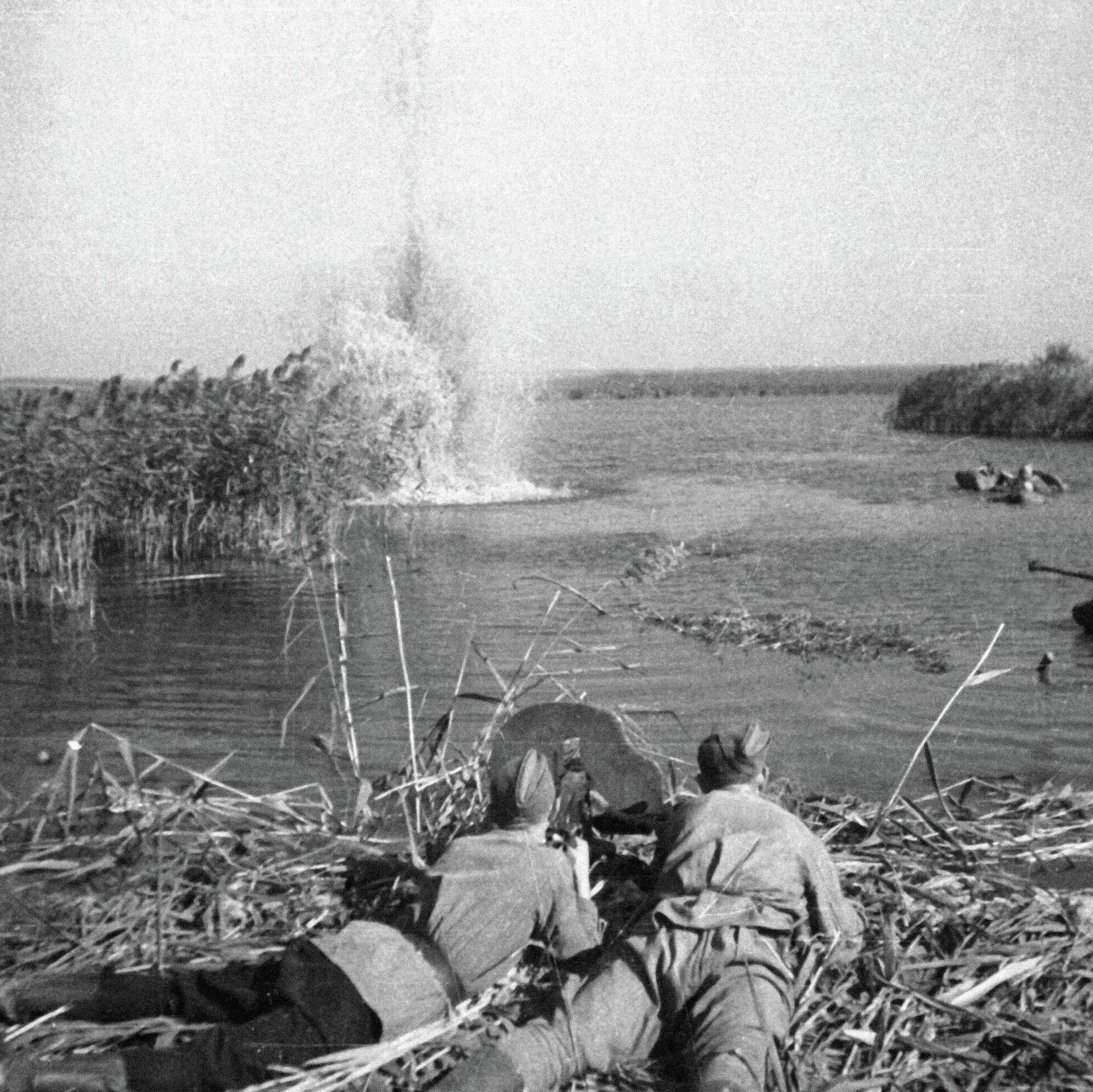 Советтик аскерлер өздөрү жасаган кайыктар менен жайык дарыядан өтүп, өздөрү менен кошо куралдарды, минометторду ташыган. Бир катар жоокерлер сүзүп өтүүгө аргасыз болушкан.