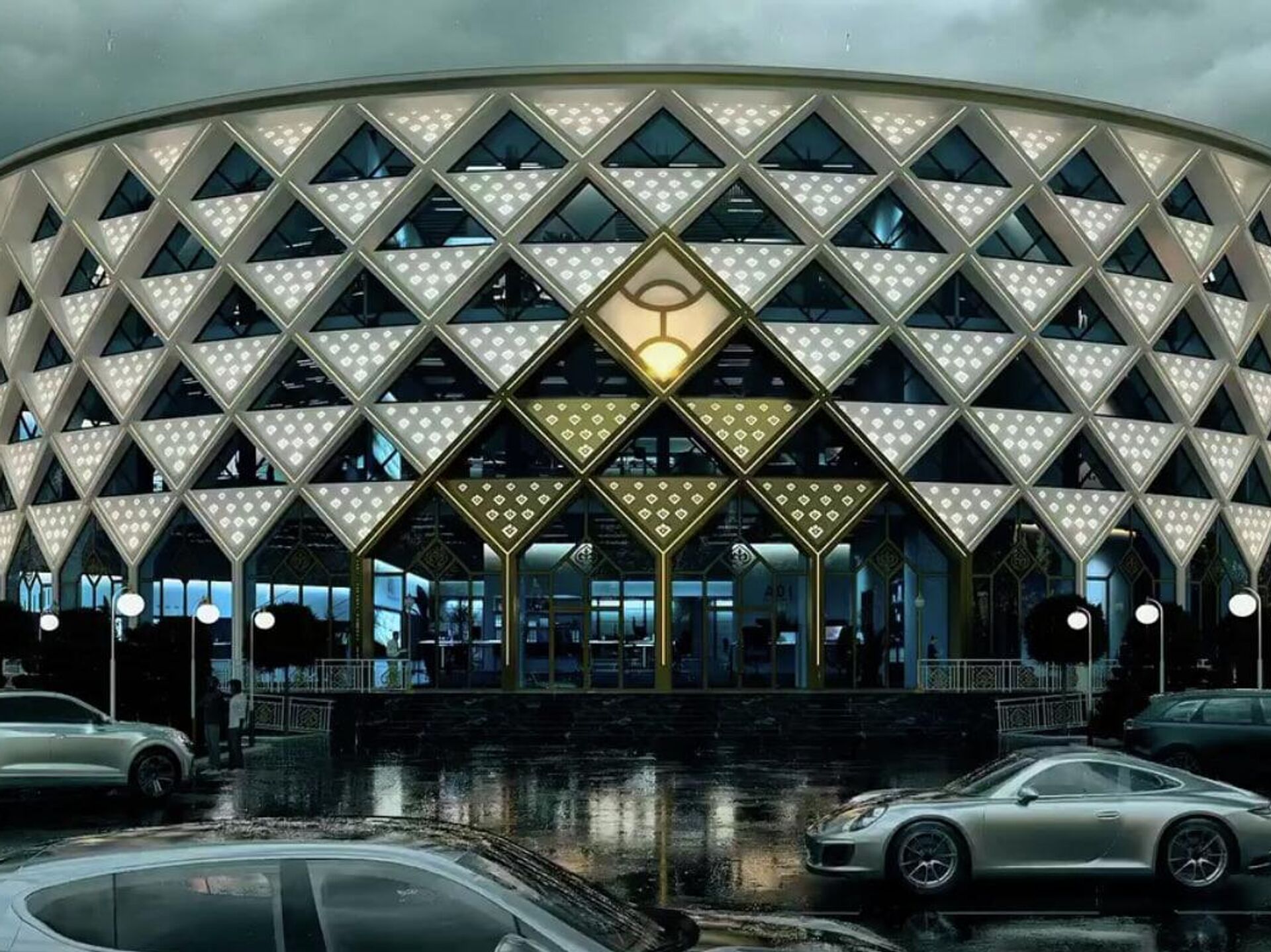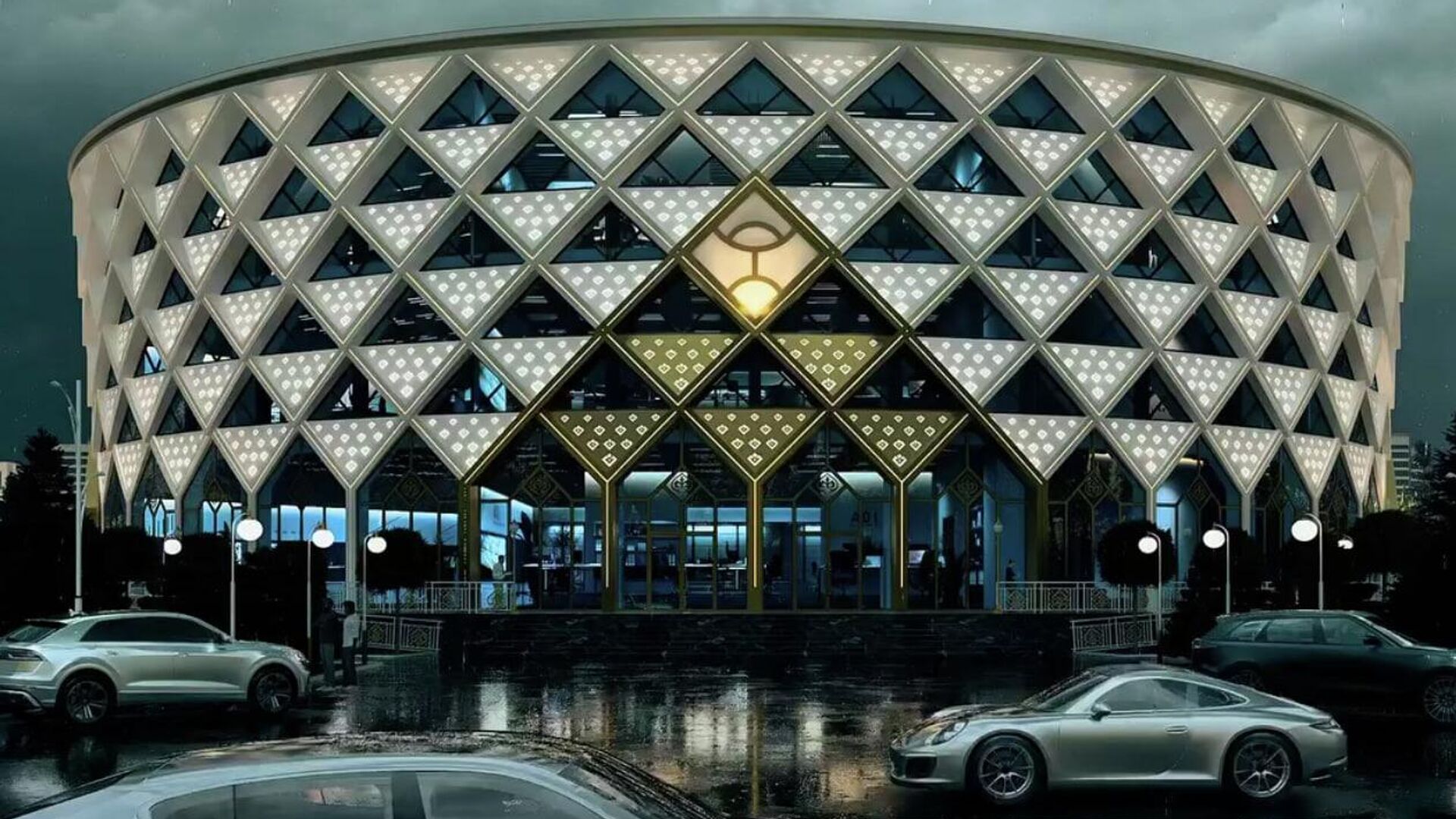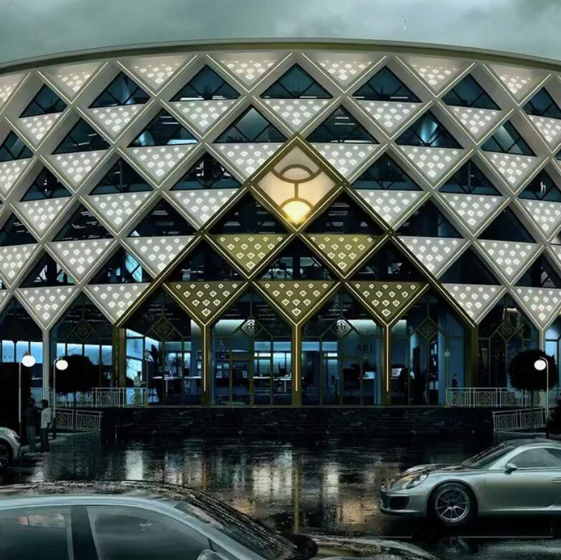 "Биринчи кабатта 500 орундуу заманбап банкеттик зал, экинчи кабатта 1300 орундуу чоң концерттик зал, үчүнчү кабатта улуу баянга арналган көргөзмө музей жайгашат", — деп айтылган маалыматта.