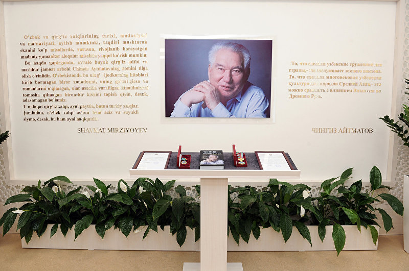 Шавкат Мирзиёев жана Чыңгыз Айтматов. Шавкат Мирзиёев Жизак облусун башкарып турган кезде Борбор Азия элдеринин маданияттарынын Ассамблеясынын президентинен – Брюсселде жашаган Чыңгыз Айтматовдон ыраазычылык кат алат. Аны улуу жазуучу акимге жаш акындардын семинарын мыкты өткөргөндүгү үчүн жиберген. 2008-жылы 12-14-июнда Кыргызстандын Өзбекстандагы элчилигинде Айтматовдун каза болгондугуна байланыштуу көңүл айтуу зыйнаты уюштурулганда, өлкөнүн премьер-министри катары барган Мирзиёев аза китепчесине мындай жазуу калтырган: "Улуу жазуучу, ойчул жана гуманист Чыңгыз Айтматовдун каза болгондугу тууралуу кабарды Өзбекстанда өтө кайгы-капа менен кабыл алдык. Мына ушундай азалуу убактарда Өзбекстан жетекчилигинин, өкмөтүнүн жана калкынын атынан маркумдун үй-бүлөсүнө, тууган-уруктарына, ошондой эле бүтүндөй кыргыз калкына чын дилден аза кайгысын билдиремин жана сабыр тилеймин". 2018-жылдын 2-апрелинде Өзбекстандын президенти Шавкат Мирзиёев "Улуу жазуучу жана коомдук ишмер Чыңгыз Айтматовдун туулган күнүнүн 90 жылдыгын кеңири белгилөө тууралуу" Жарлыкка кол койгон.
