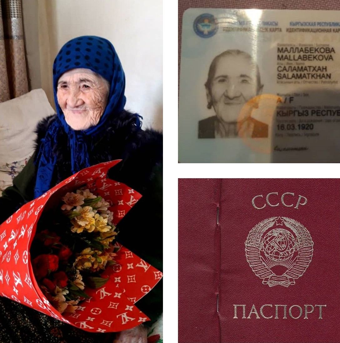 БИШКЕК, 8-май – Sputnik. Ош облусуна караштуу Өзгөн шаарында жашаган 100 жаштагы Саламатхан Маллабековага биринчи ирет Кыргызстандын паспорту берилди. Бул тууралуу Мамлекеттик каттоо кызматынан билдиришти.