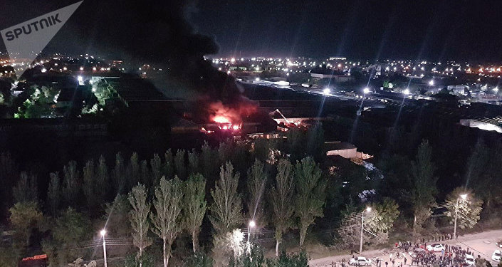 Ишембиге караган түнү Бишкектеги “Мадина” базарынан өрт чыгып, учурда окуя болгон жерде өрт өчүрүүчүлөр, милиция жана Тез жардам унаасы иштеп жатат. 15.09.2018, Sputnik Кыргызстан